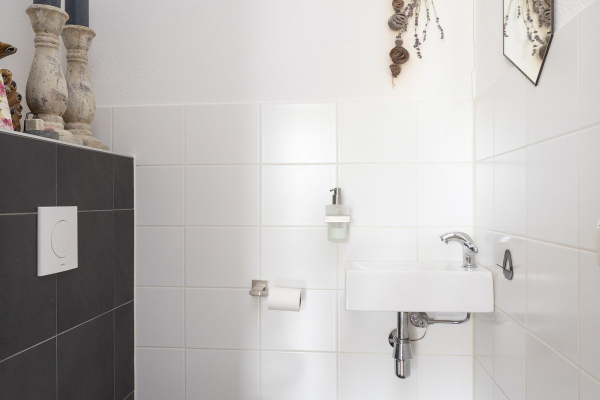 Entree met meterkast, toilet met fonteintje en deur naar de woonkamer. Wat is dit een heerlijke ruimte om te verblijven. Prachtige grote ramen zorgen voor veel daglicht en bieden prachtig zicht over de omgeving. De open keuken is aan de achterzijde gelegen en beschikt over een 4 pits gaskookplaat, combioven, vaatwasser (2022) en een koelkast met vriesgedeelte. Het geheel is afgewerkt met een kunststof blad. Vanuit de keuken krijgt u toegang tot het ruime terras, deze is gelegen op het oosten. Deze verdieping is voorzien van een eiken vloer (white wash).