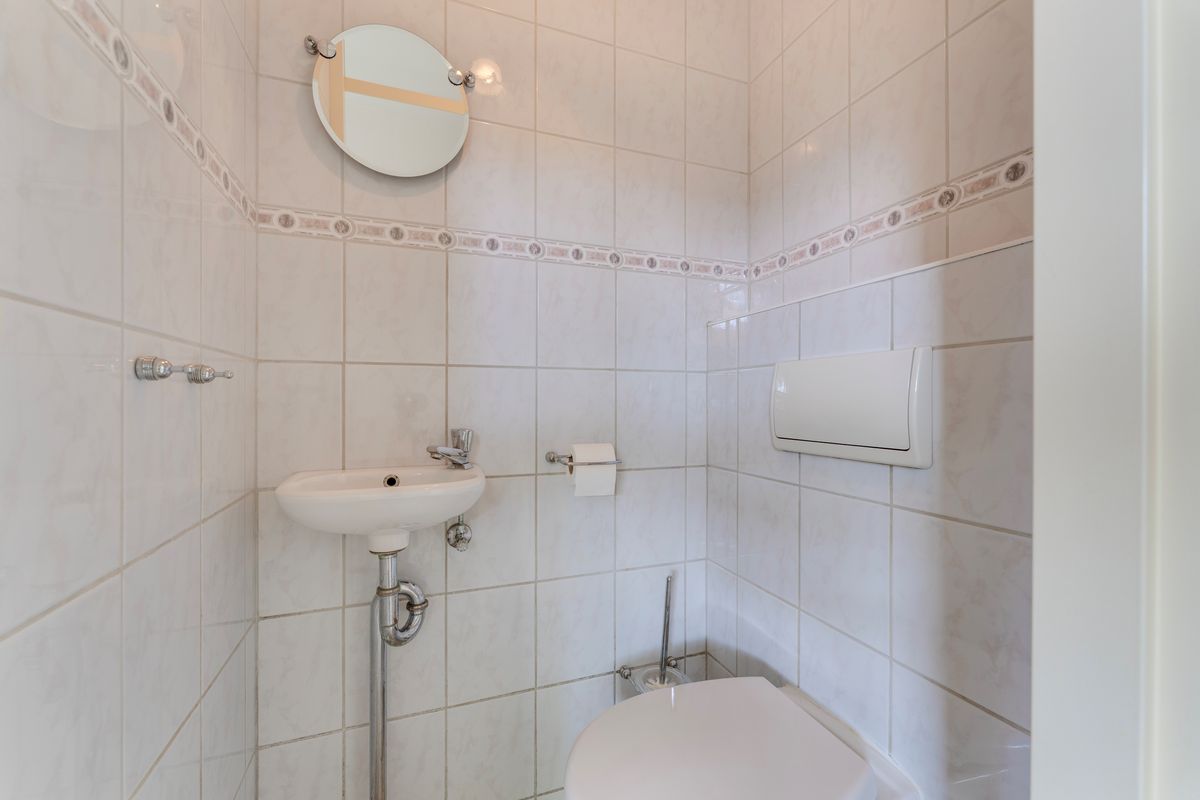 De overloop op de eerste verdieping geeft toegang tot twee comfortabele slaapkamers en de badkamer. Beide slaapkamers zijn prettig van formaat en licht dankzij de brede raampartijen. De slaapkamer aan de achterzijde strekt zich uit over de volle breedte van het huis, waardoor je hier eenvoudig een royaal bed én een kledingkast kwijt kunt. Ook is de slaapkamer aan de achterzijde voorzien van aircoditioning. Ook de tweede kamer is goed in te delen en geschikt als kinderkamer, werkkamer of logeerplek. De badkamer is compleet uitgerust met een douchecabine, een toilet, een wastafelmeubel met bergruimte en een stijlvolle designradiator. Alles is overzichtelijk geplaatst en praktisch in gebruik — klaar voor dagelijks comfort.