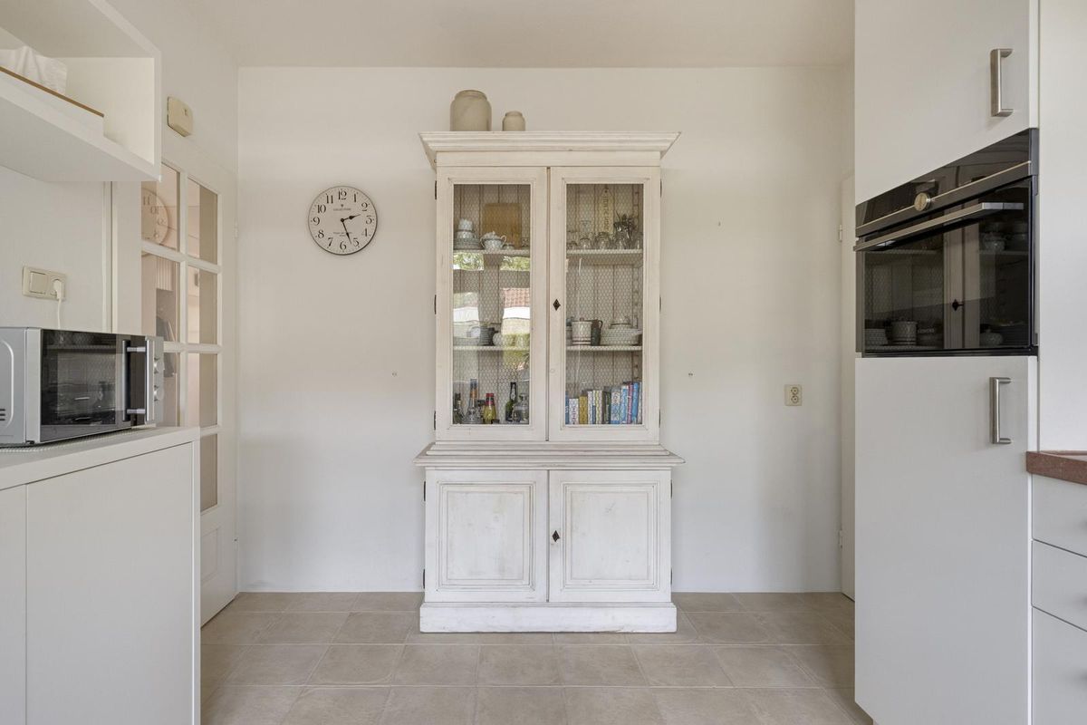 Verder is er nog een bijkeuken te vinden, praktisch ingericht met witgoedaansluitingen en met doorgang naar de ruime inpandige garage.