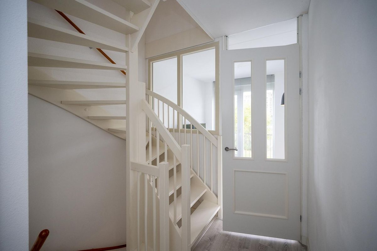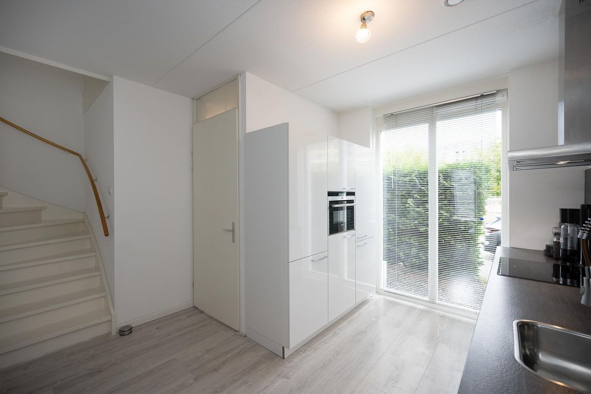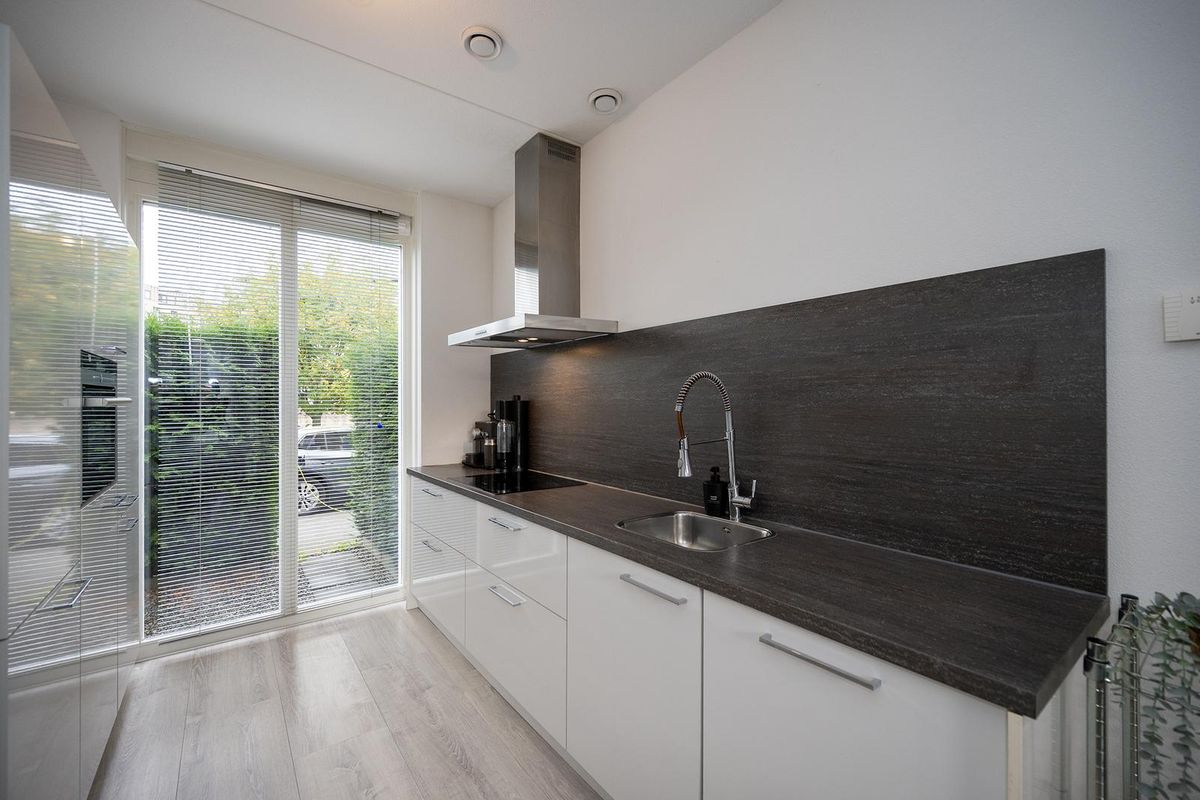 Ruime hal met meterkast en separaat toilet. Moderne keuken voorzien van diverse inbouwapparatuur, waaronder oven, vaatwasser en inductiekookplaat. Vanuit de keuken toegang tot de achtertuin, schuur en achterom.