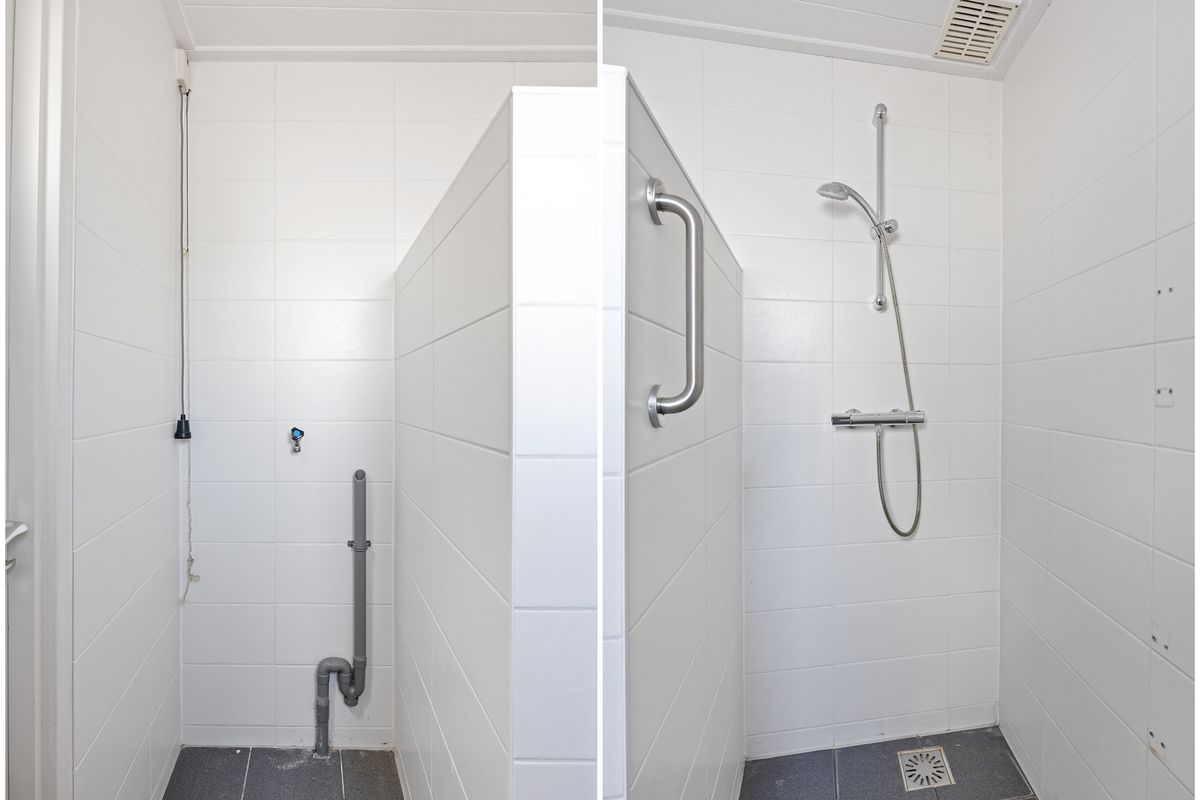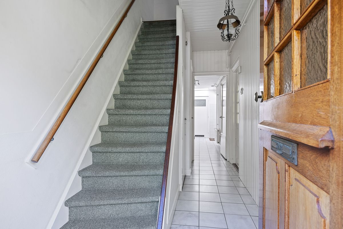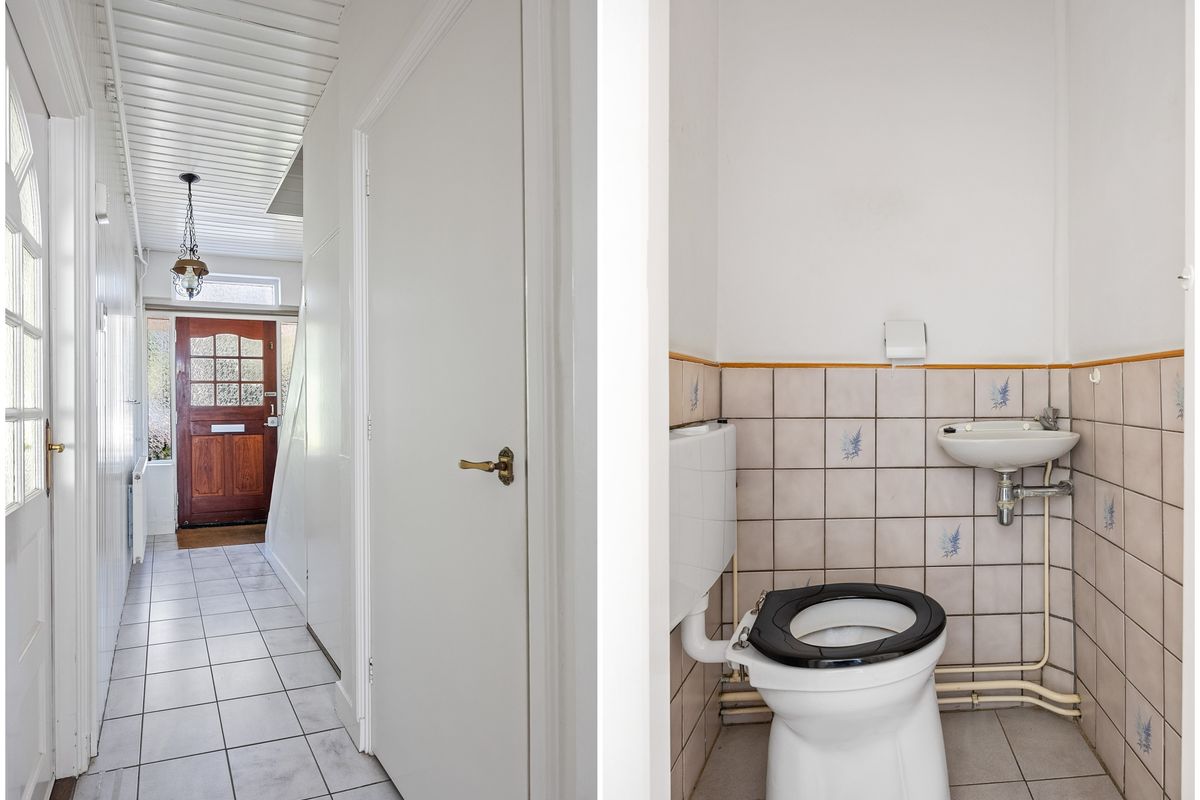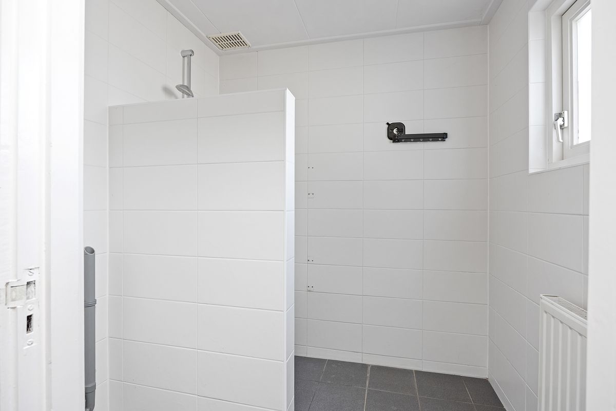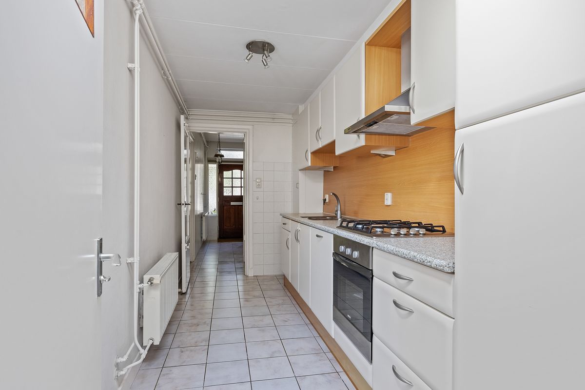 Entree, hal, meterkast, toilet en trapopgang. Royale woonkamer met lichte kleurstelling en voorzien van een schouw. De hal biedt toegang naar de aparte keuken. De keuken beschikt over diverse inbouwapparatuur. Vanuit de keuken is er toegang naar de badkamer met douche en aansluiting voor uw witgoed. De aangebouwde berging is toegankelijk vanuit de achtertuin. De beschutte achtertuin met houten bergschuur heeft een zonligging op het zuidwesten en heeft een eigen achterom.