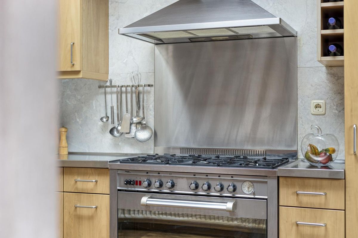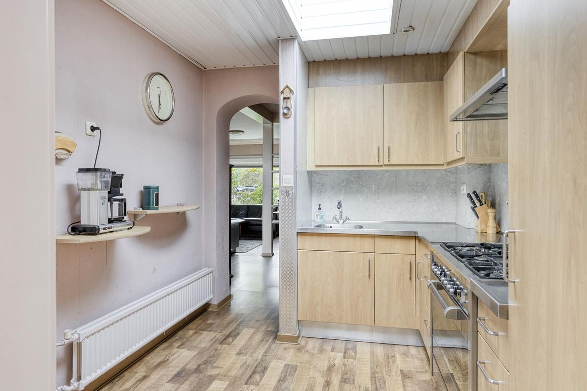Aansluitend vind je een handige bijkeuken met afgietgootsteen en aansluitingen voor het witgoed.