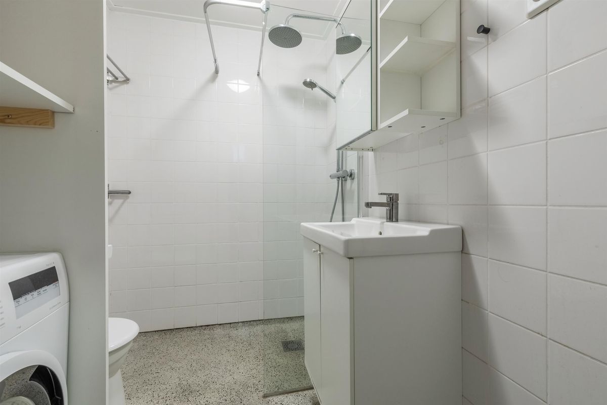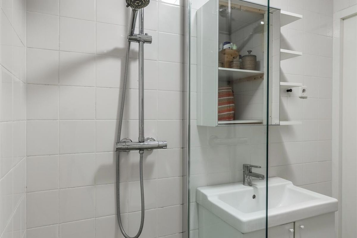 Je betreedt het appartement via de hal. Aan de voorzijde bevindt zich de slaapkamer, licht en rustig gelegen met ramen voorzien van dubbel glas. Aan de andere zijde van de hal vind je een praktische bergruimte. Aan het einde van de hal bevindt zich de badkamer, compleet met wastafel, royale douche, toilet en een wasmachine.