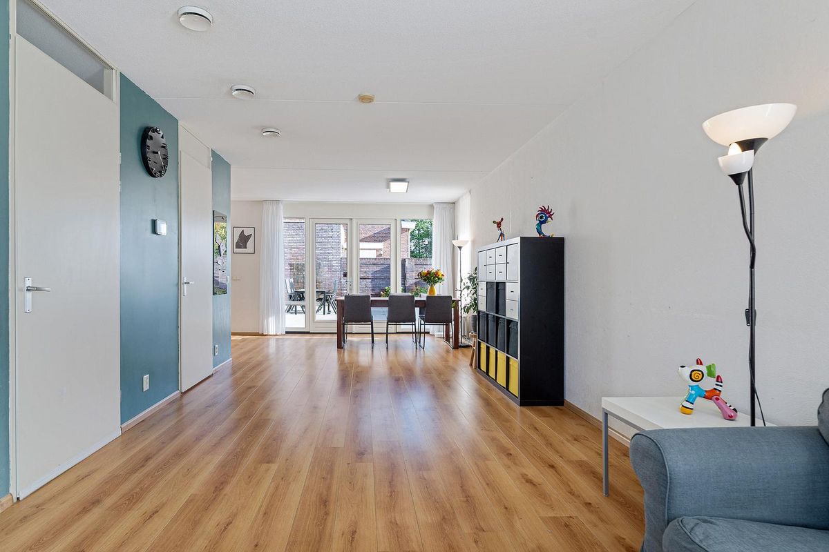 De royale woonkamer is heerlijk licht dankzij de grote raampartijen en is voorzien van een elektrisch rolluik voor extra comfort. De woonkamer biedt ruimte aan zowel een gezellige zithoek als een eetgedeelte, waar openslaande deuren u uitnodigen naar de achtertuin te stappen.