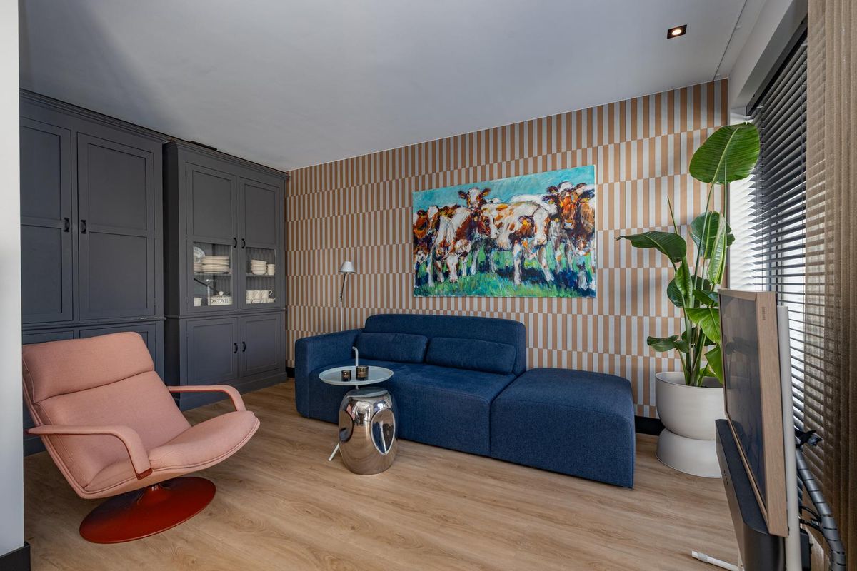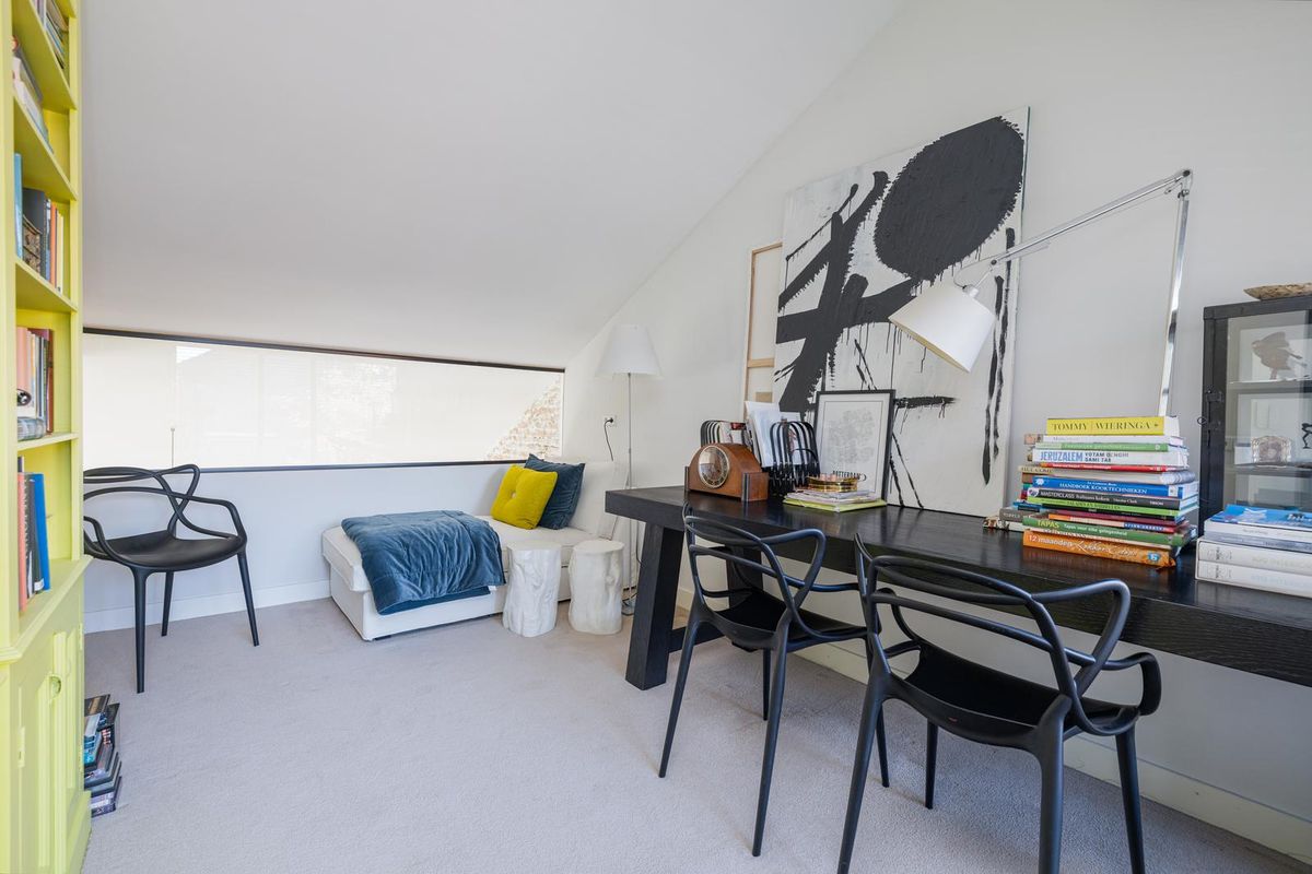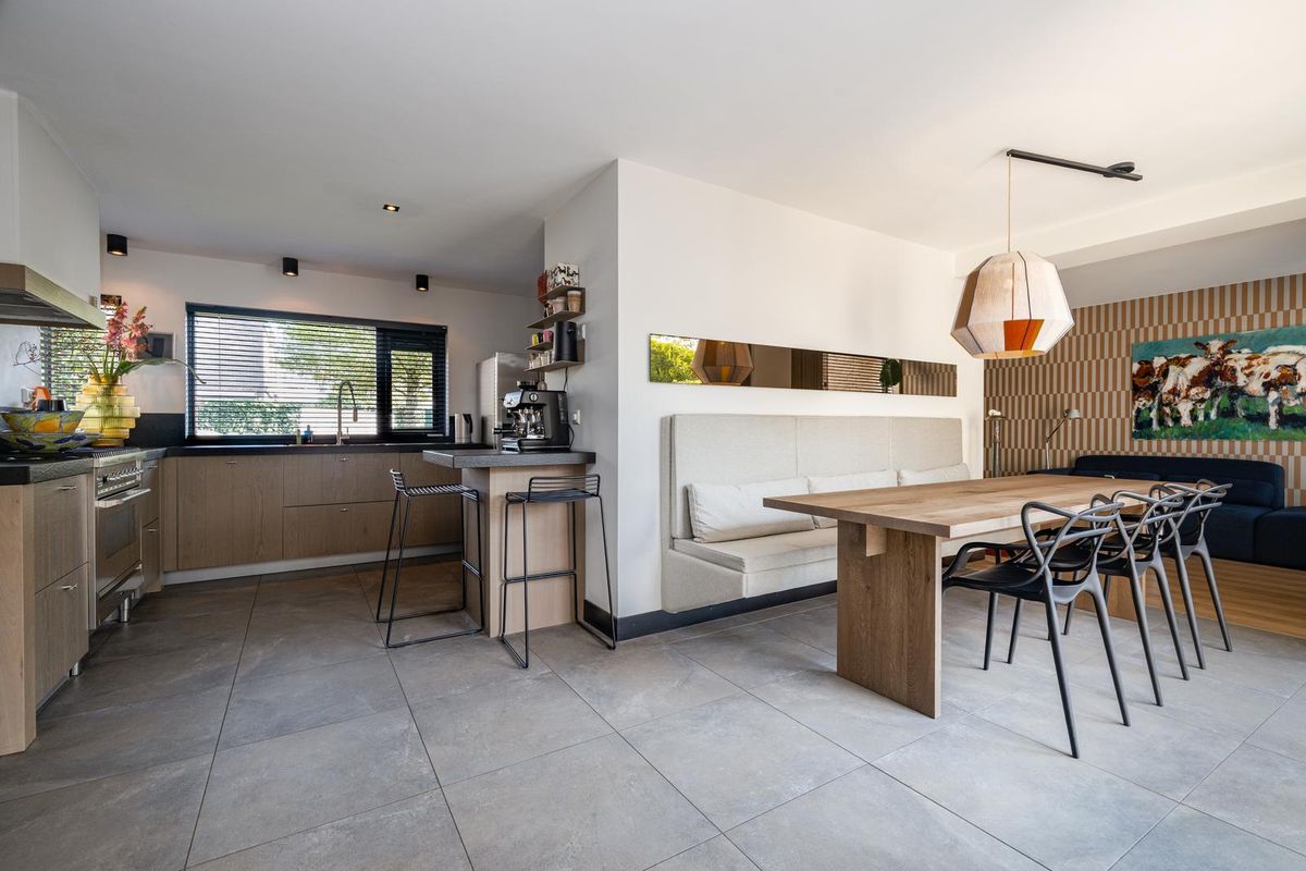 Via het eetkamergedeelte (met vaste bank aan de muur) heb je een perfecte plek als eetkamer. Hier kan je heerlijk avonden genieten met vrienden/familie. Aansluitend is er toegang tot de extra living/woonkamer in de voormalige garage/schuur. Deze living heeft een ruimtelijke en luxe uitstraling met veel raampartijen en biedt bovendien een rustig hoekje om heerlijk tot rust te komen. Deze ruimte kan ook perfect dienen voor een werkplek of een speelgedeelte voor de kinderen. Een prachtig verlengstuk van de leefruimte. Middels een schuifpui is er eveneens toegang tot de achtertuin.