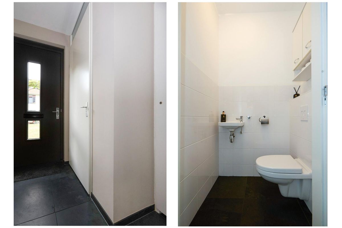 Bij binnenkomst bevindt zich de entree met hal en garderobe, voorzien van een modern toilet en de meterkast. De open keuken is gesitueerd aan de voorzijde van de woning, volledig uitgerust met o.a. inductiekookplaat en heteluchtoven van Etna, vaatwasser van AEG en veel opbergruimte met uitzicht op het hofje. Aan de achterzijde van de woning de ruime woonkamer met toegang tot de achtertuin.
