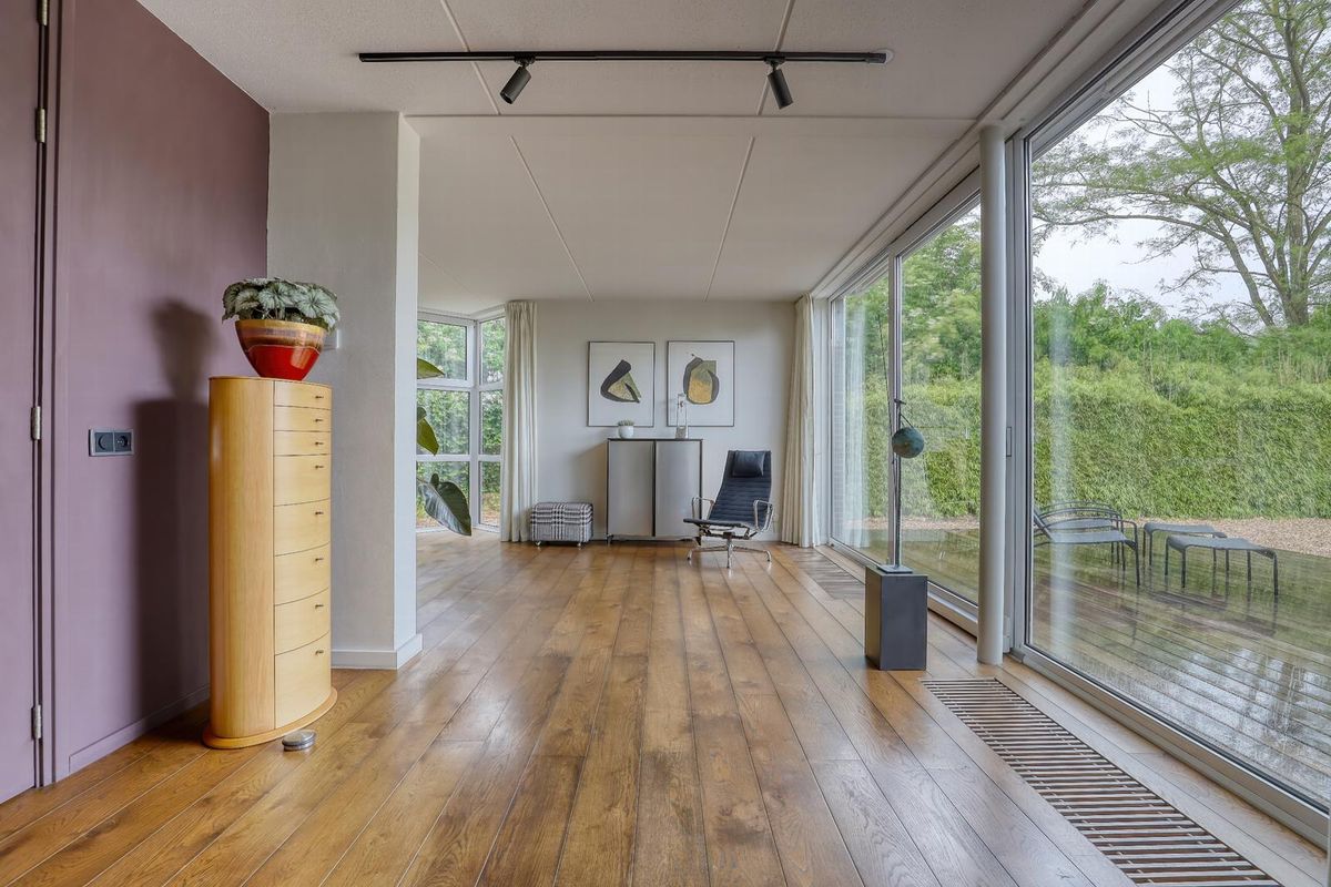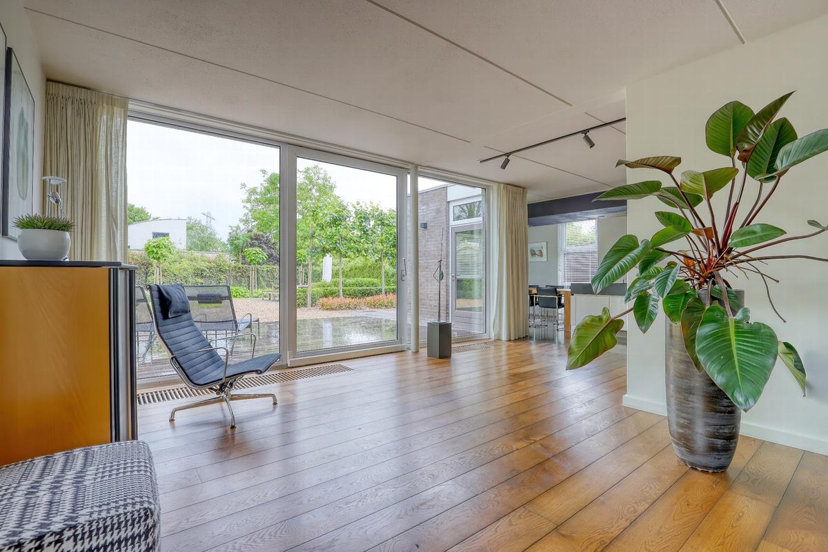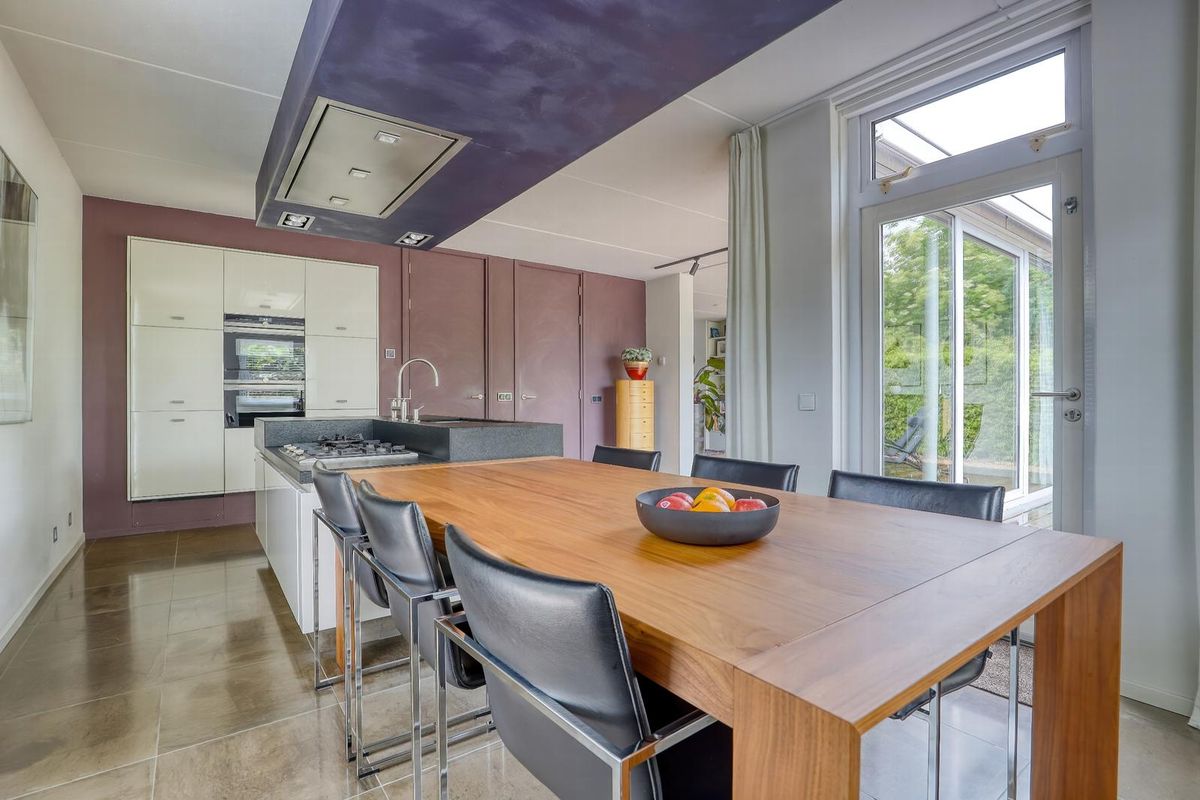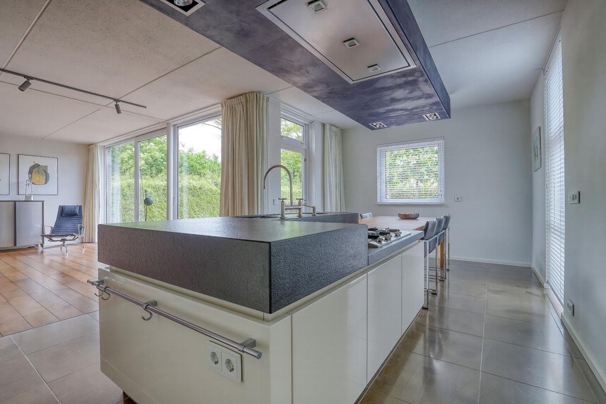 Via de overdekte entree betreedt u de hal met trapopgang en het moderne toilet met fonteintje. Aan de linkerzijde van de woning ligt de sfeervolle woonkamer, ingericht met een moderne brede 'dancing flame' gas gestookte open haard, om de hoek aan de achterzijde is de open verbinding naar de keuken. Dankzij de grote raampartijen is er veel daglicht en verbinding met de tuin! De keuken is modern vormgegeven en voorzien van een strak kookeiland met geïntegreerde spoelbak, gaskookplaat en afzuigkap. In de kastenwand zijn een combi oven/magnetron, oven/stoomoven en koelkast keurig weggewerkt, en ook de vaatwasser ontbreekt niet. De keuken biedt bovendien veel werkruimte. De eettafel vormt een stijlvol verlengde van het kookeiland, waardoor koken en tafelen op natuurlijke wijze in elkaar overlopen. Dankzij de schuifpui en keukendeur staan de woonkamer en keuken in direct contact met het terras. Op de begane grond vindt u verder een royale bijkeuken/garage met veel praktische opbergruimte. Hier bevinden zich ook de aansluitingen voor wasmachine en droger, evenals de cv-installatie.