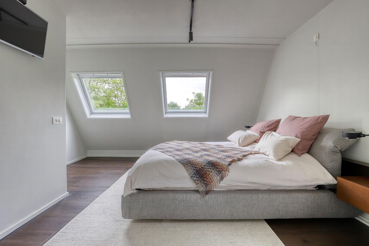 De overloop geeft toegang tot drie comfortabele slaapkamers, waarvan de master bedroom een royale maatvoering heeft en uitzicht biedt over de tuin. De overige slaapkamers zijn goed in te delen als kinderkamer, logeerkamer of kantoorruimte. De ruime badkamer is fris en tijdloos ingericht met witte wandtegels, een ligbad, separate douche met groen tegelaccent, toilet en een wastafel met spiegelmeubel. De badkamer is zowel via de master bedroom als de overloop bereikbaar, wat zorgt voor optimaal comfort en flexibiliteit. Een lichtkoepel zorgt bovendien voor extra natuurlijk licht in de ruimte.