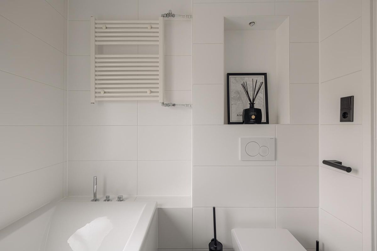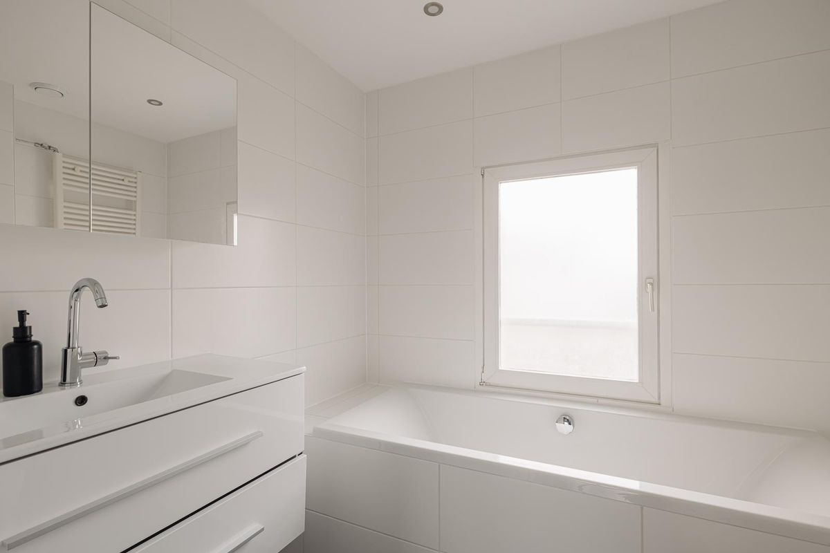 De overloop geeft toegang tot alle vertrekken. Op deze verdieping bevinden zich drie slaapkamers en twee moderne badkamers: één met douche en wastafelmeubel, en één met ligbad, toilet en wastafelmeubel.