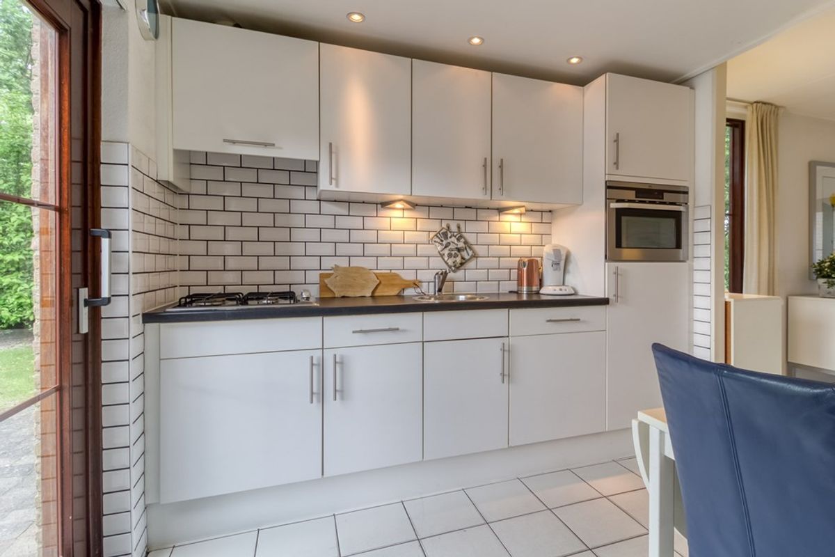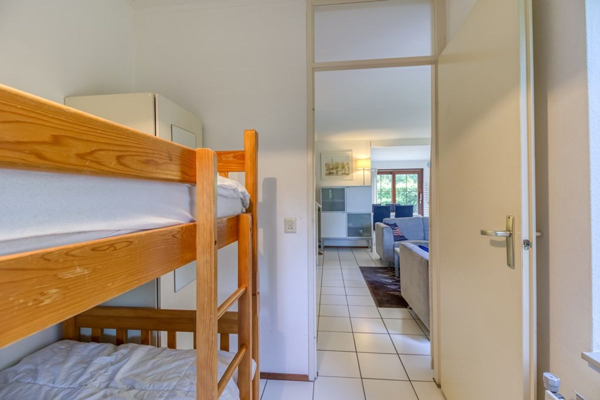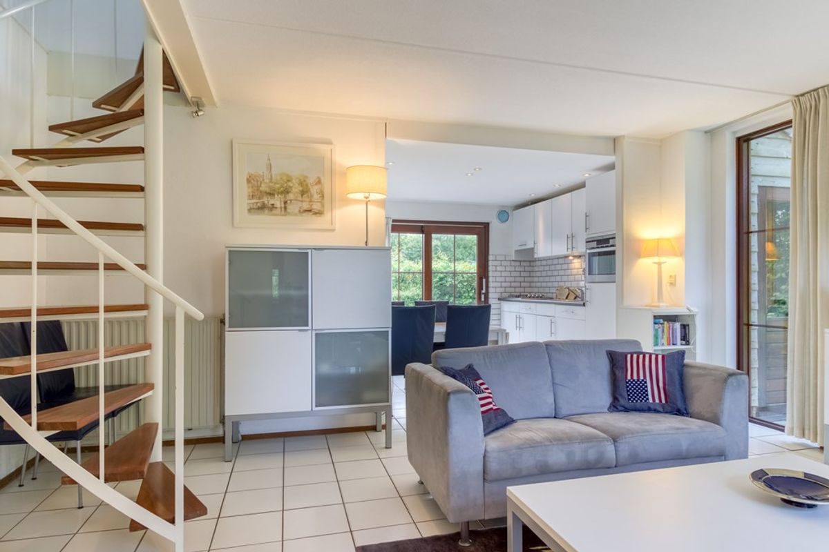 Bij binnenkomst komt u in de hal met meterkast, ruimte voor de garderobe en hier bevindt zich ook de cv-ketel. De woonkamer heeft een zithoek en eethoek met open keuken. De keuken en woonkamer hebben beide een schuifpui naar de tuin. De keuken is voorzien van 4-pits gaskookplaat, afzuigkap, spoelbak, koelkast met vriesvak, vaatwasmachine en combi-magnetron. Tevens is er in de woonkamer een open haard voor de gezellige winterse avonden. Naast de woonkamer bevindt zich een slaapkamer en ook de badkamer is te vinden op de beneden verdieping en is voorzien van een douche, dubbele wastafel en toilet.
