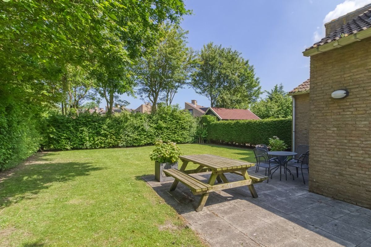 Royale tuin aan de voor- zij- en achterkant van de woning. Door de grootte van de tuin kunt u er heel de dag genieten van de zon. Als het erg warm is in de zomer is er ook altijd een schaduwplekje te vinden.