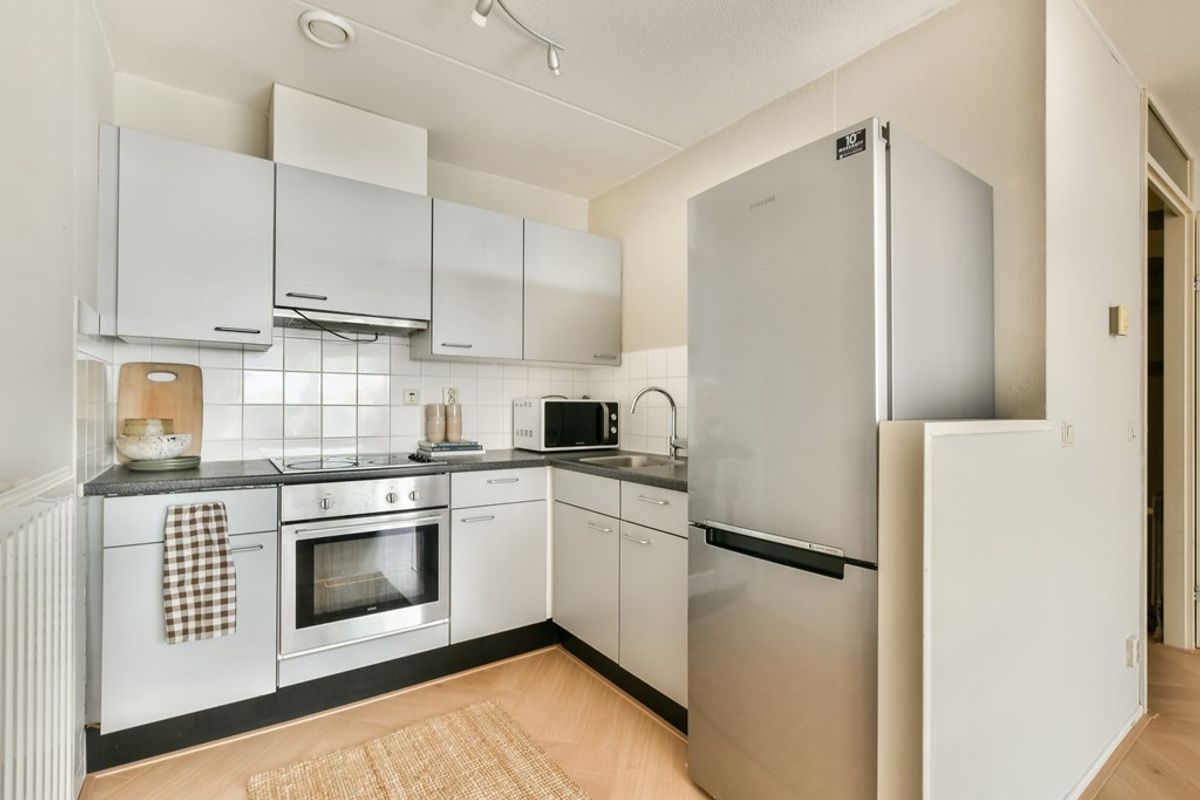 De halfopen keuken is praktisch ingericht en sluit goed aan op de leefruimte.