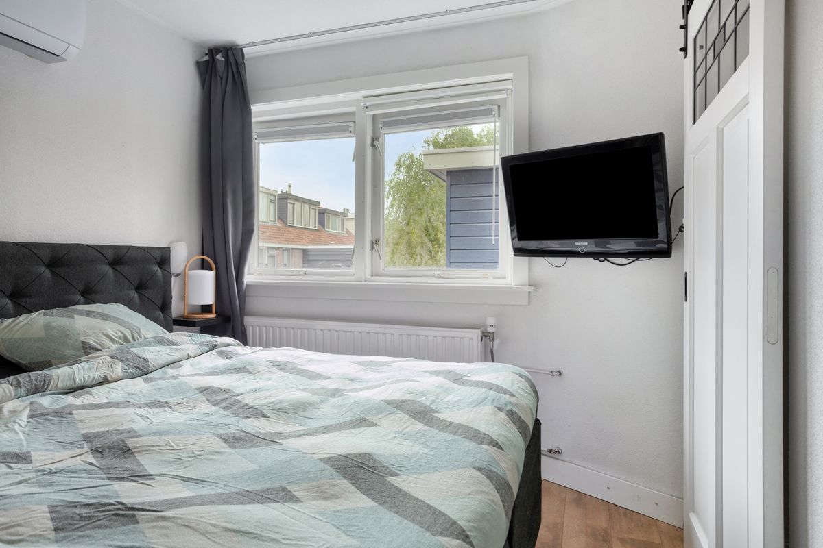 Master bedroom aan de achterzijde met laminaatvloer afwerking en toegankelijk via een schuifdeur. Deze kamer is vv een airconditioning die kan verwarmen en koelen.