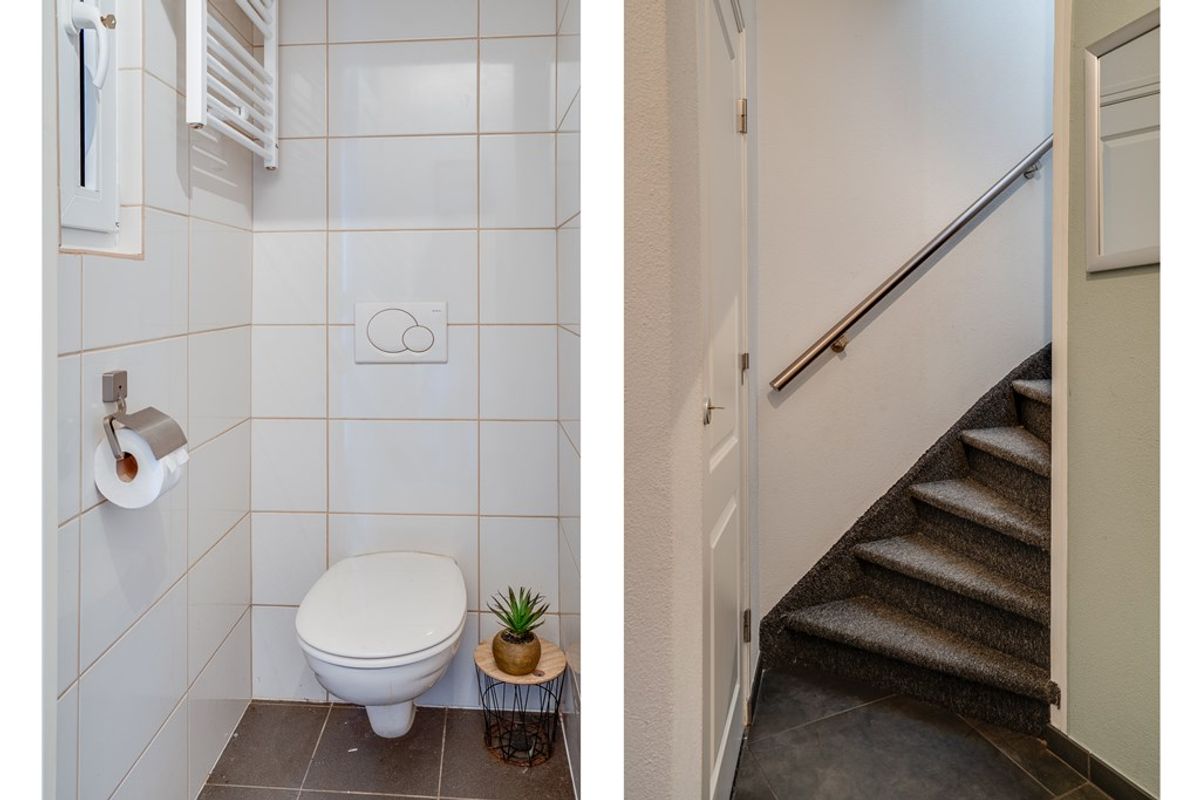 Via de hal heeft u toegang tot de toiletruimte met zwevend toilet, de meterkast, de kelder, de trap naar de eerste verdieping en de woonkamer.