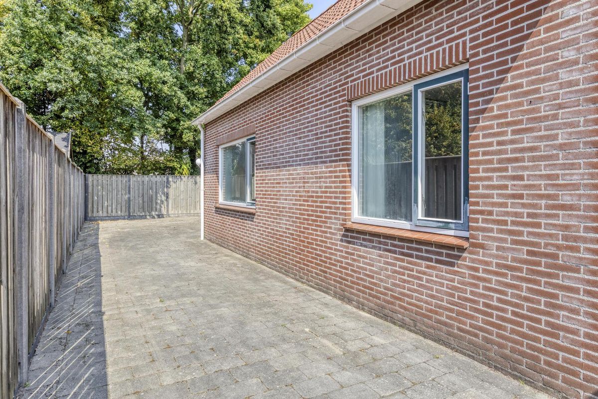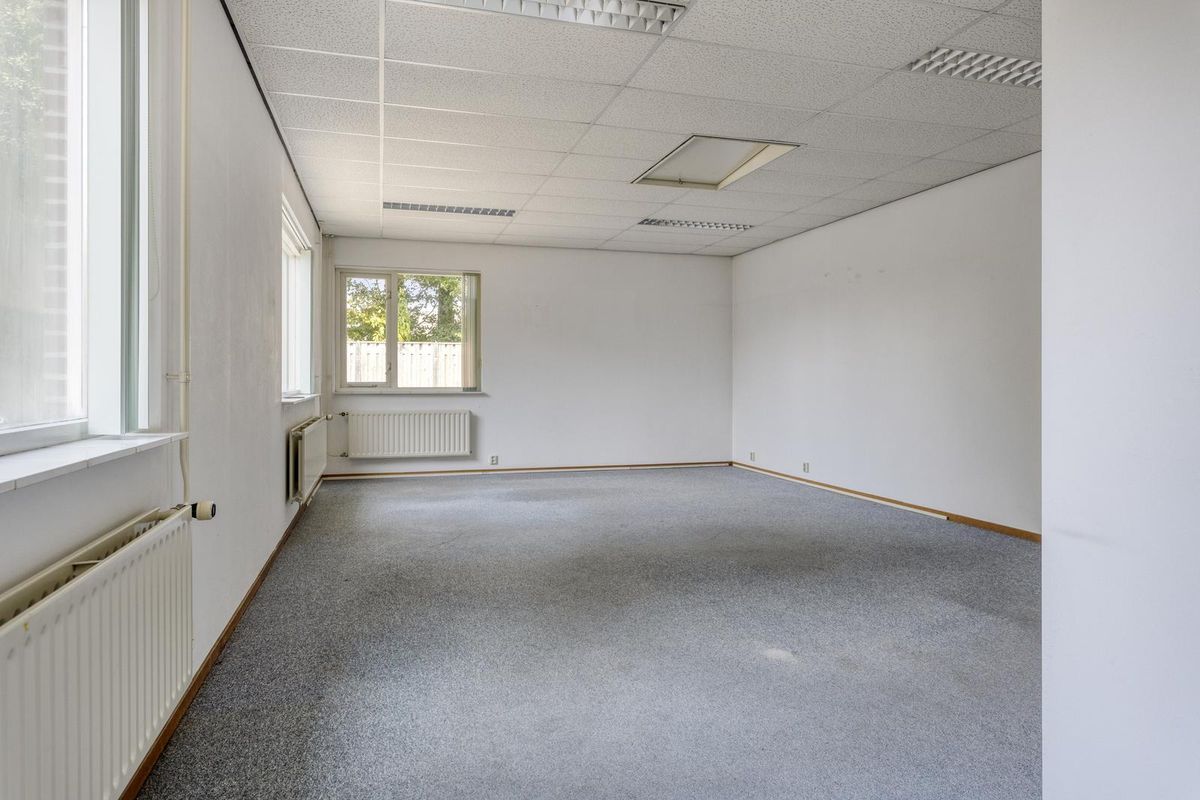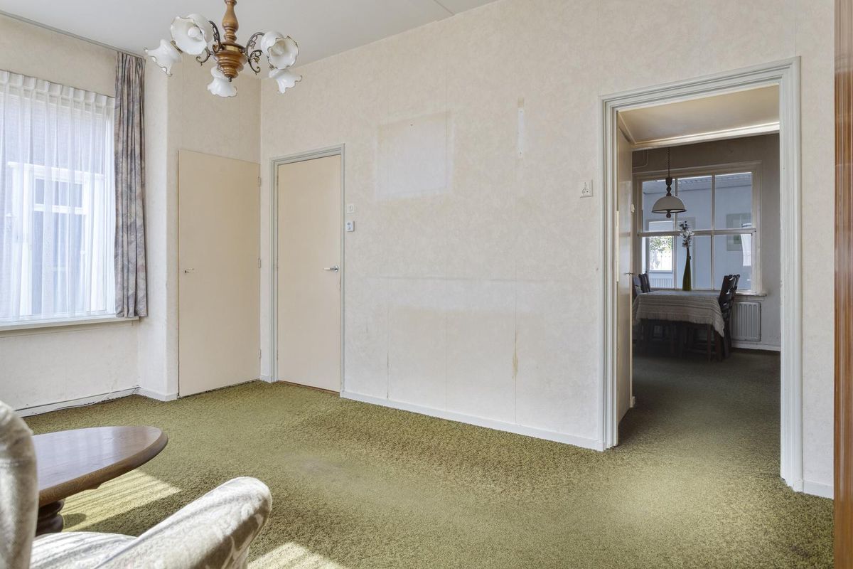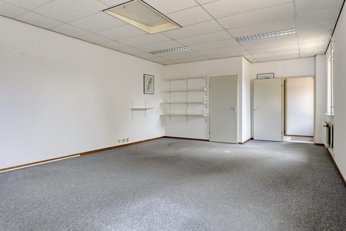 Daarna treft u een tussenportaal met toilet en de achterdeur welke toegang geeft tot de tuin. De aanbouw is ingedeeld in 2 ruimtes, voorheen is dit kantoor en spreekruimte geweest. Via een vlizotrap is er een riante bergzolder te bereiken.