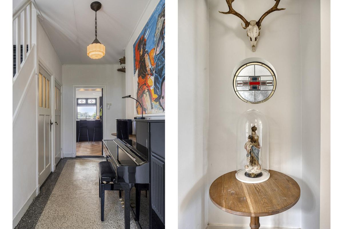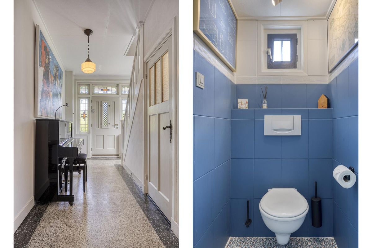 De huidige entree is via de bijkeuken, maar ook wanneer je via de oorspronkelijke voordeur binnenstapt, begint het gevoel van thuiskomen. Je treft daarachter namelijk een sfeervolle en ruime hal met diverse authentieke elementen zoals een granitovloer, paneeldeuren en glas-in-loodramen. Vanuit de hal is er een trapopgang naar de 1e verdieping, toegang naar de provisiekelder, meterkast en de toiletruimte met wandtoilet.