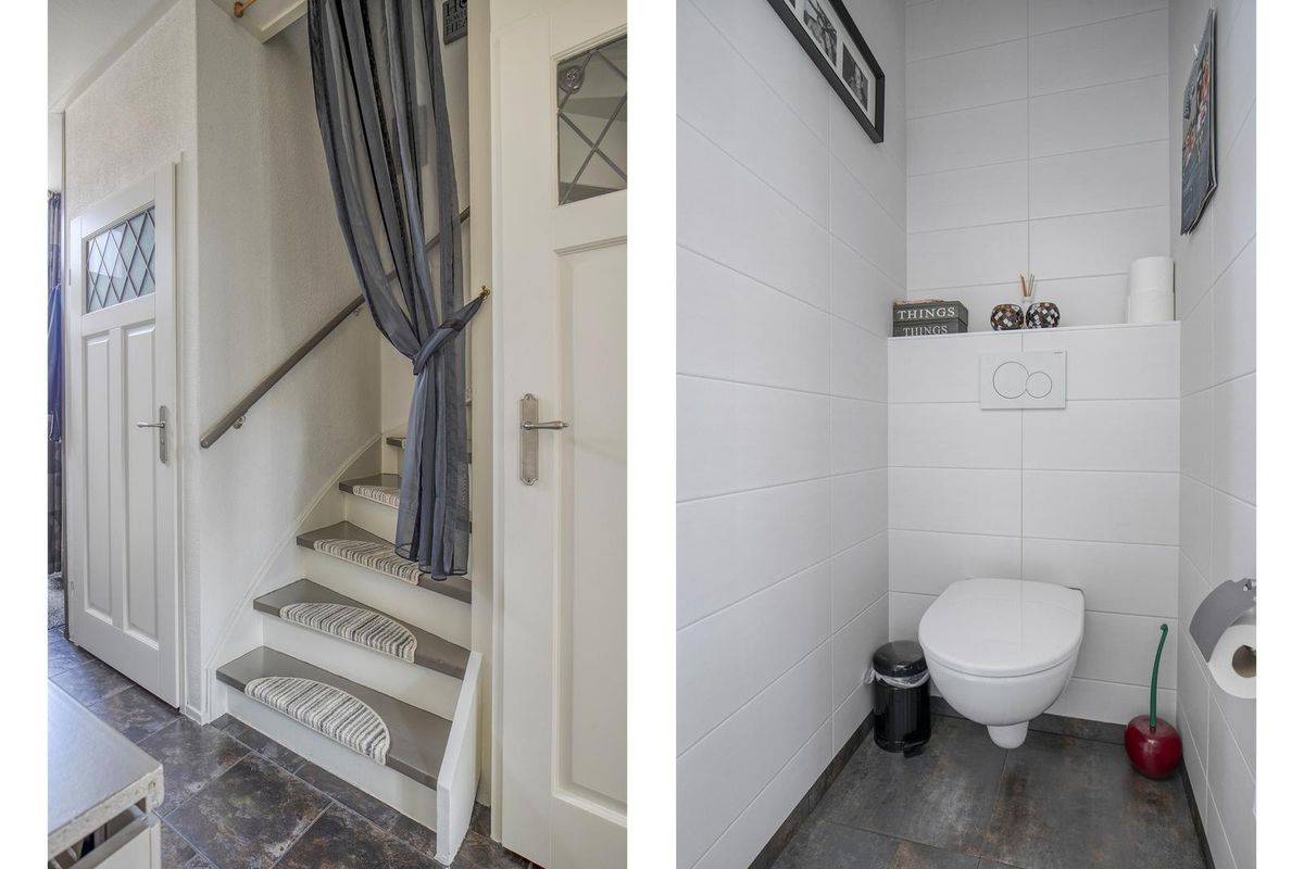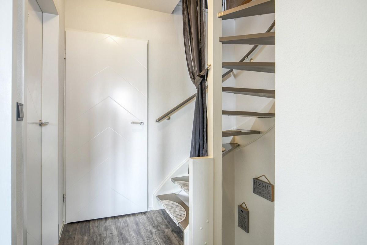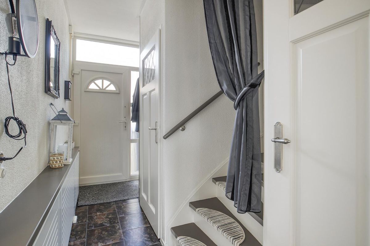 Hier bevinden zich de garderobe, meterkast, het toilet en de trap naar de eerste verdieping.
