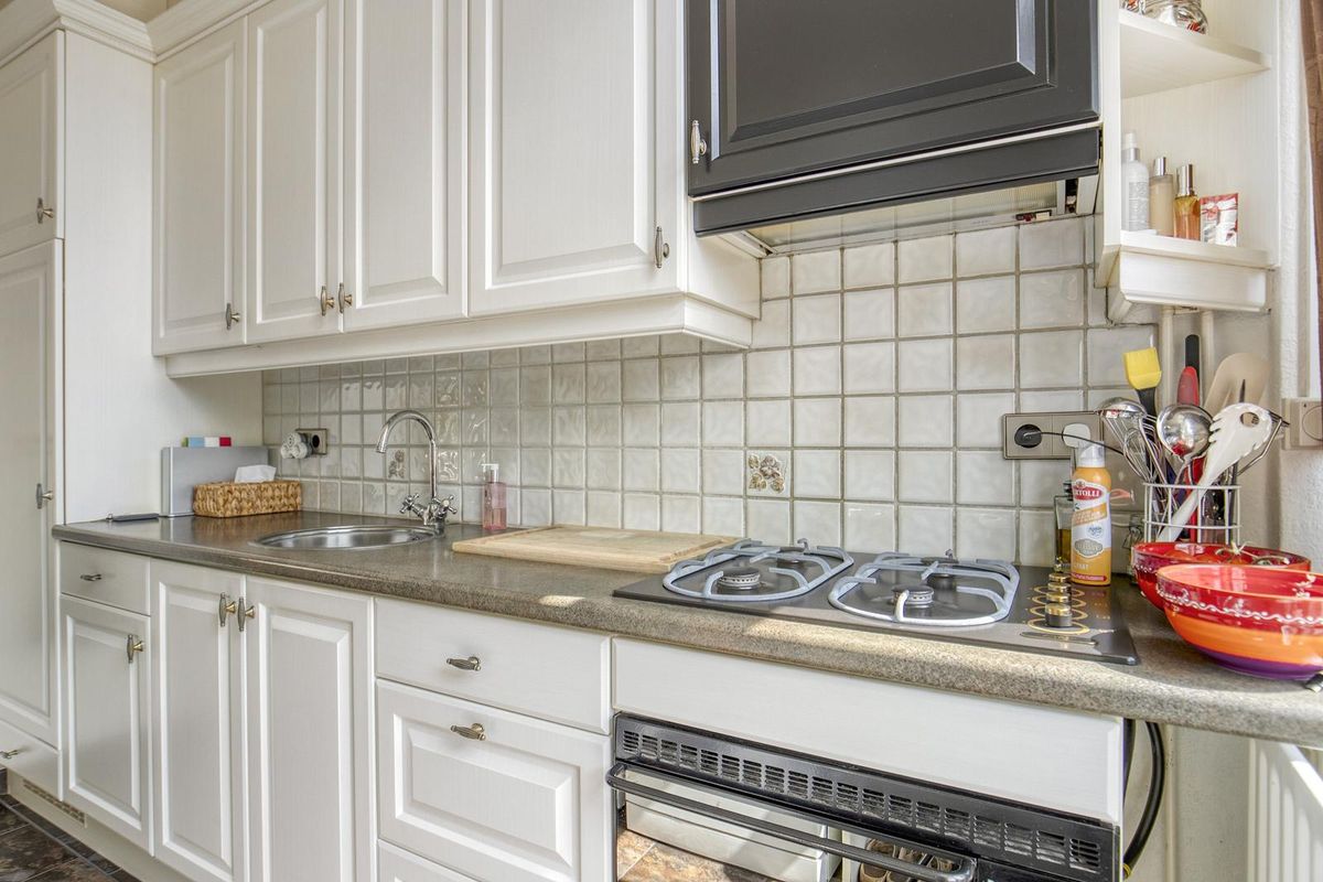 De keuken is netjes onderhouden en voorzien van inbouwapparatuur.