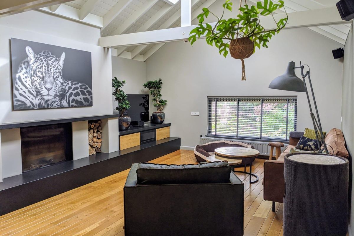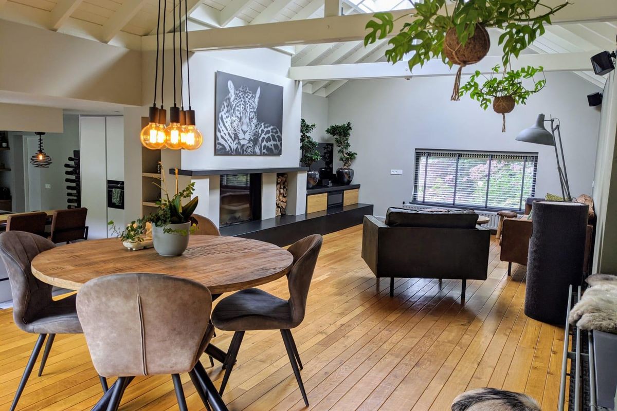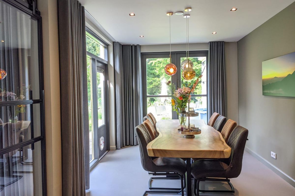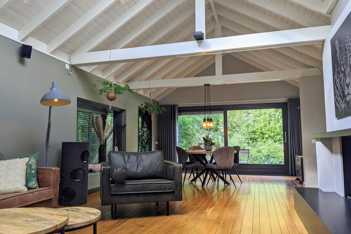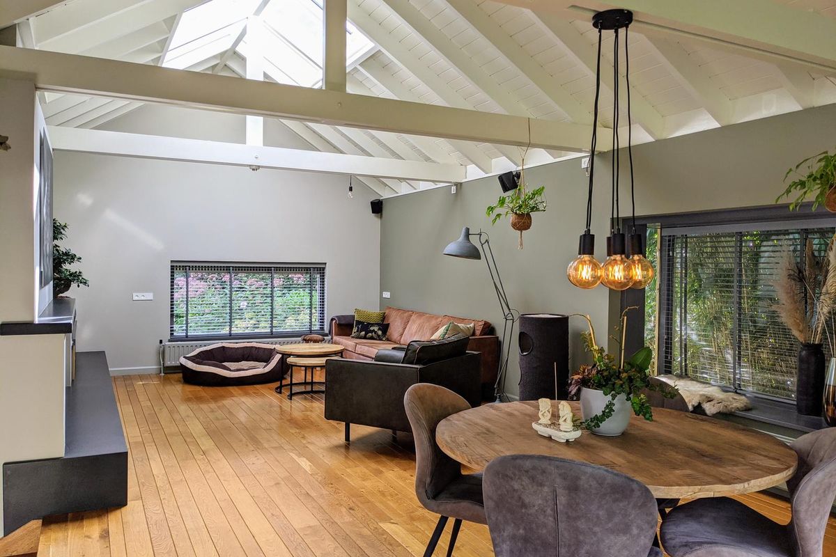 Tijdelijk te huur voor max 12 maanden: Rustig gelegen en compleet gerenoveerde semi-bungalow met 4 slaapkamers, 3 badkamers, prachtige parkachtige tuin, bijgebouw voorzien van een sauna, relax-ruimte met sanitair-voorzieningen, een tuinserre en een ruime oprit met dubbele carport. Gelegen op loopafstand van wandelbos De Duiventoren.