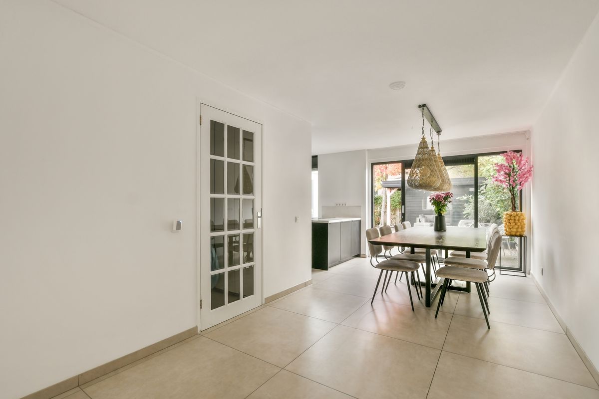 De open keuken is in 2023 vernieuwd en vormt het hart van de woning. De moderne opstelling is voorzien van diverse inbouwapparatuur, waaronder een kookplaat met geïntrigeerde afzuiging, koelkast, heetwaterkraan, combi magnetron, oven en vaatwasser. De keuken is niet alleen praktisch ingedeeld, maar ook een fijne plek om te koken en contact te houden met het gezin of gasten in de woonkamer. Via de keuken bereik je de verzorgde achtertuin middels de schuifpui en tuindeur. De achtertuin is een heerlijke plek om tot rust te komen.