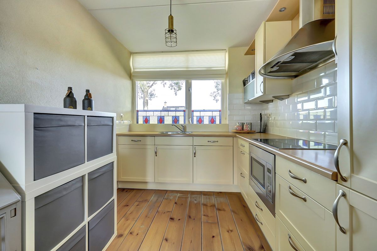 Het uitzicht vanuit de woonkamer is werkelijk elke tijd van het jaar een genot om naar te kijken. Het veranderende panorama blijft dag in dag uit boeien, wat zorgt voor een rustgevende en inspirerende woonervaring. De woonkamer is voorzien van een mooie houtenvloer en spachtelputz wanden. Ook is er schuifpui naar een aangrenzend mooi balkon op het zuiden.