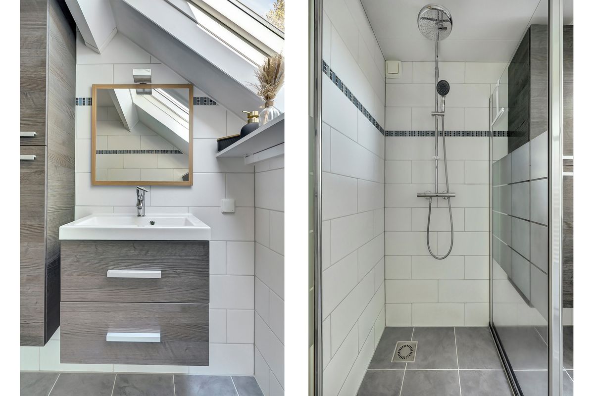 De badkamer is keurig afgewerkt en van alle gemakken voorzien. Denk aan een comfortabele douchecabine, een modern wandtoilet, een wastafel met opbergruimte en een designradiator – perfect voor het hele gezin om de dag fris te beginnen of ontspannen af te sluiten.