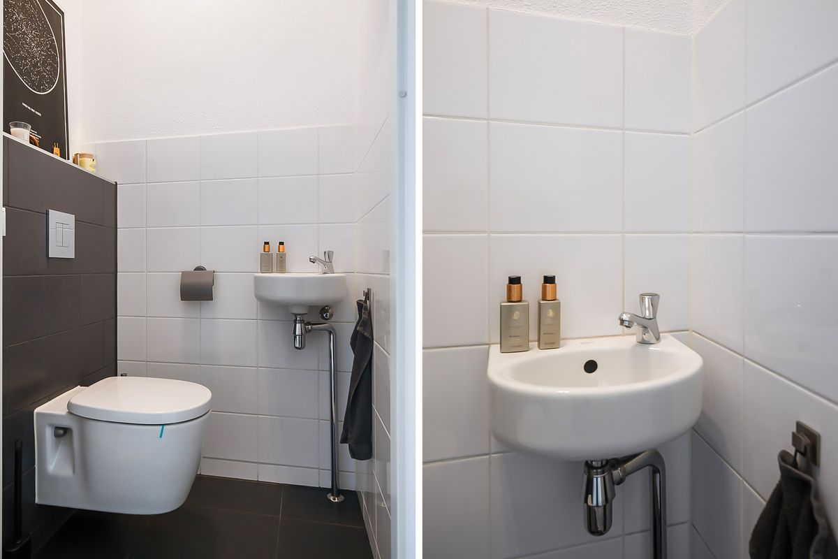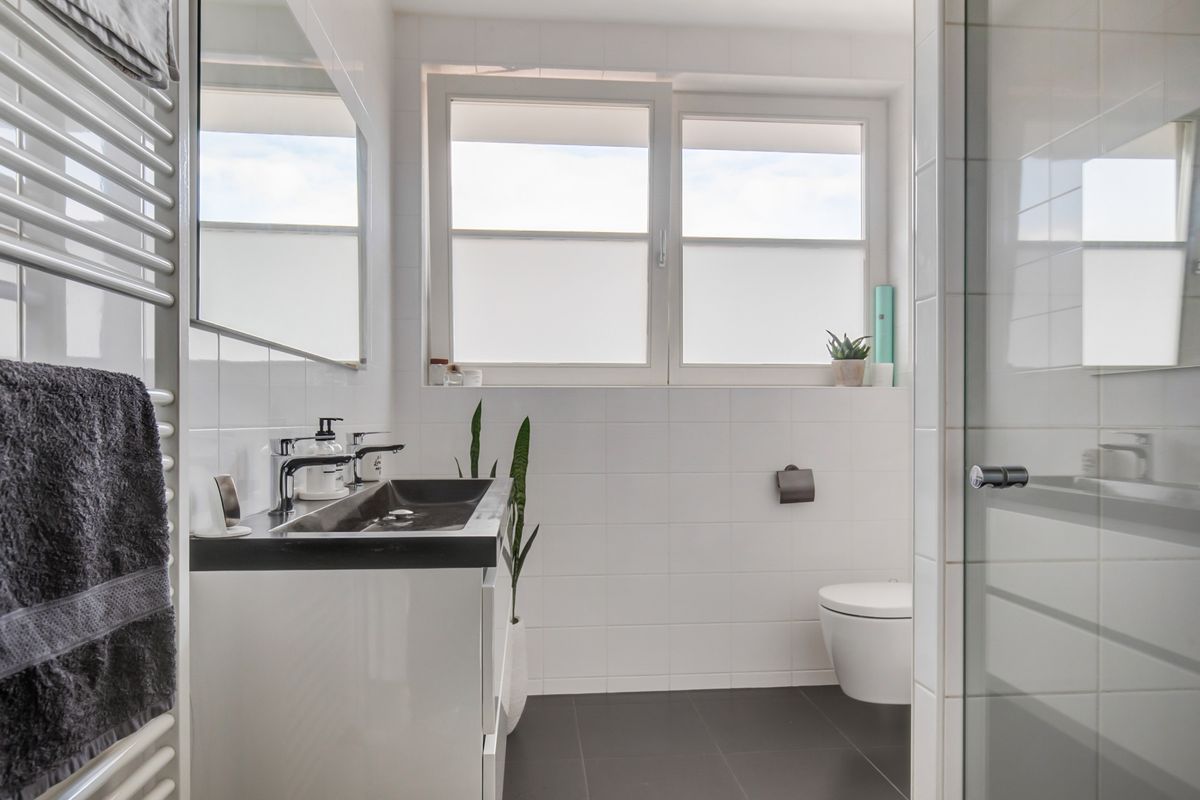 -Moderne badkamer met inloopdouche met regendouche, tweede toilet en vloerverwarming;
