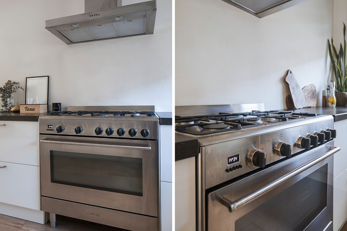 -Luxe keuken met Smeg 5-pits fornuis en oven en kokendwaterkraan;