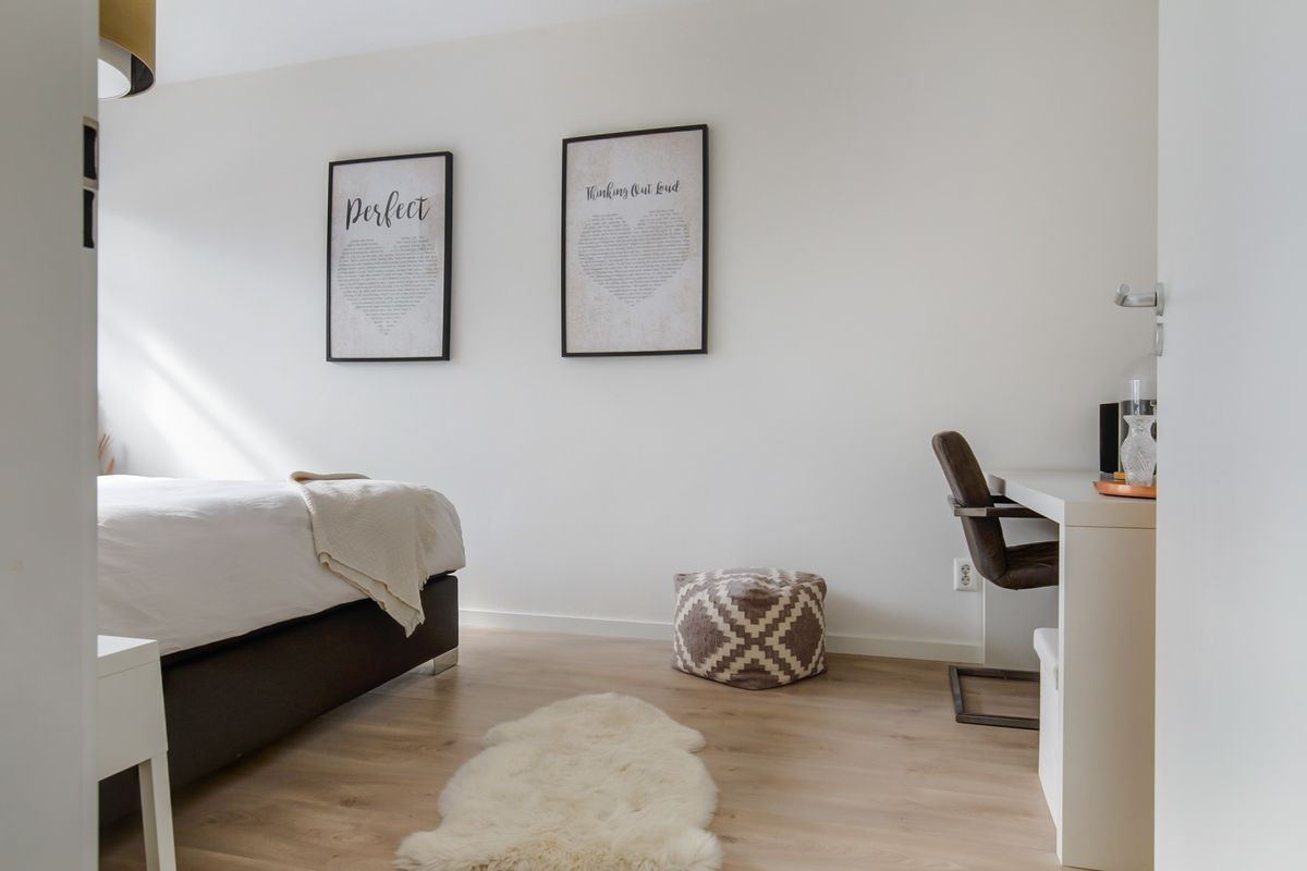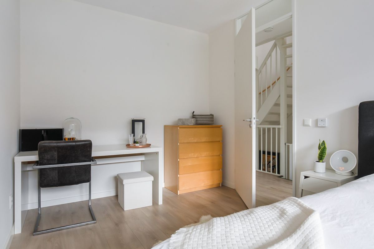 De eerste verdieping heeft drie ruime slaapkamers, waarvan twee aan de achterzijde en een aan de voorzijde van de woning. De moderne badkamer is voorzien van een tweede toilet, inloopdouche met regendouche, wastafelmeubel met dubbele kraan en een handdoekradiator.