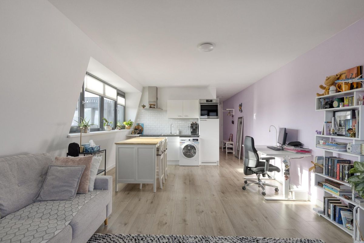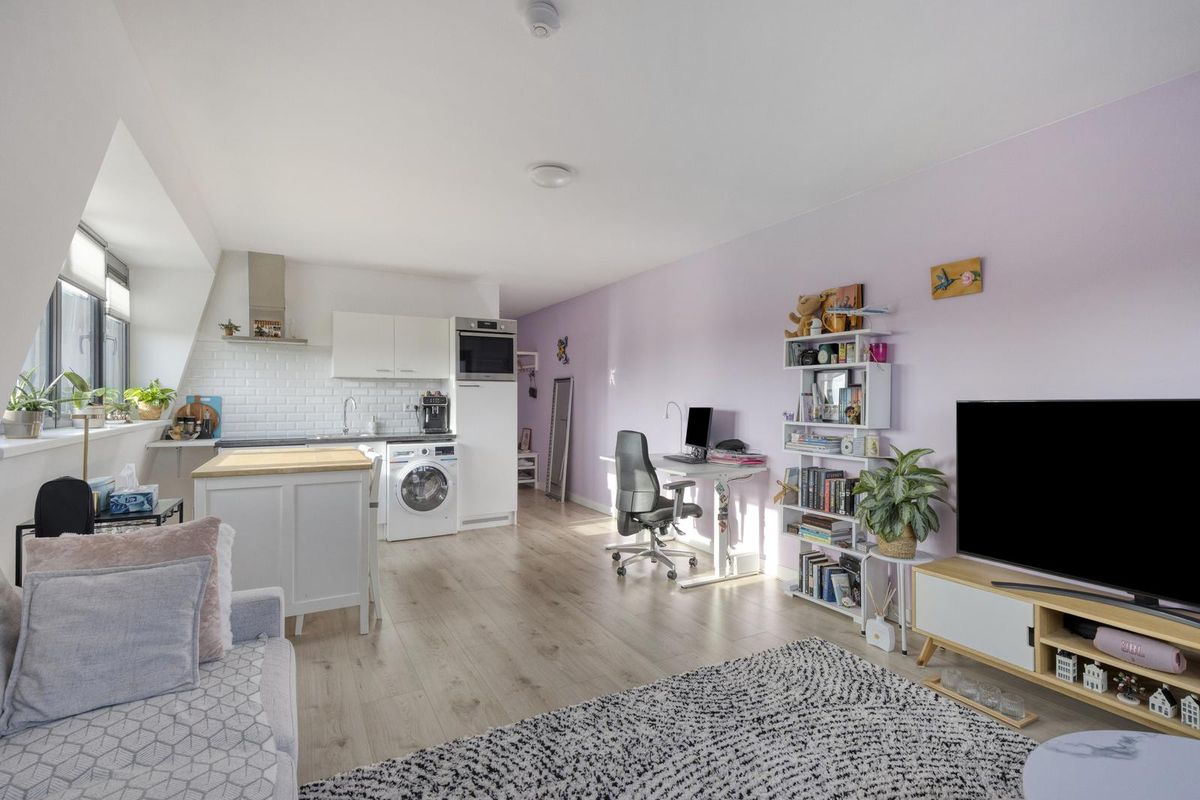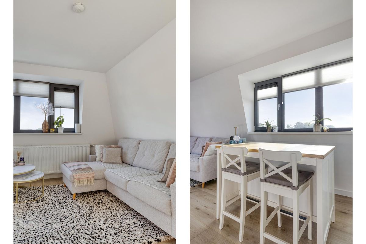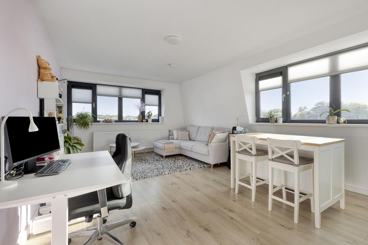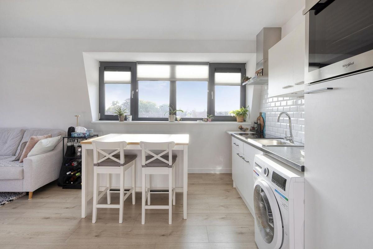 De woonkamer is verrassend licht en biedt volop mogelijkheden om gezellige hoekjes te creëren. Denk aan een knusse zithoek, een werkplek of een leesplekje bij het raam. De open keuken sluit hier mooi op aan en is uitgevoerd in een moderne stijl, compleet met inductieplaat, oven en koelkast. Ook vind je hier de aansluiting voor de wasmachine. Dankzij het slimme ontwerp kun je hier met gemak een eettafel plaatsen waar je tijdens het eten uitkijkt over Roosendaal.