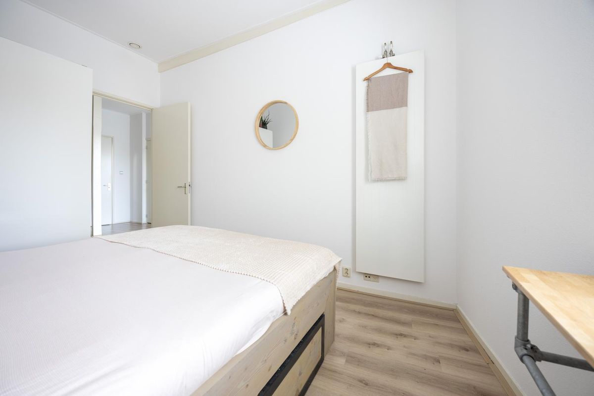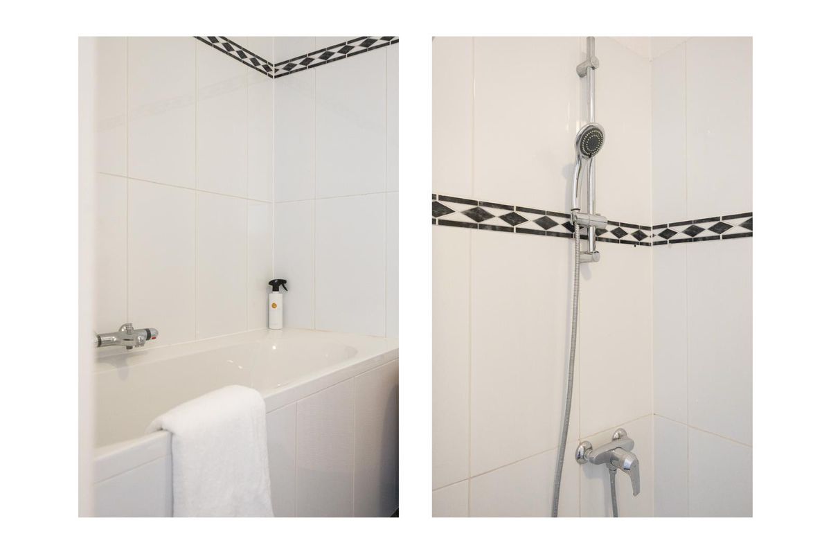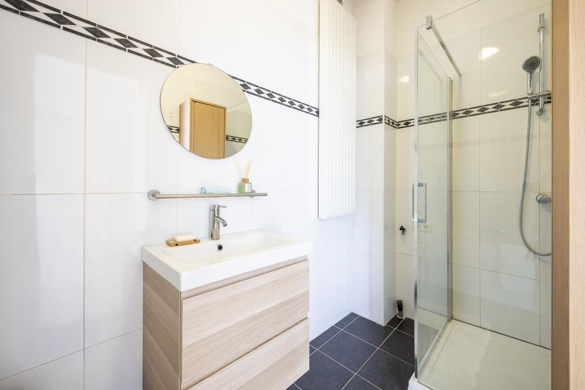 Vanuit de hal is er ook toegang tot de slaapkamer en badkamer. De ruime tweepersoonskamer straalt een aangename rust uit en de badkamer is ingedeeld met een ligbad, aparte douche en een wastafelmeubel.