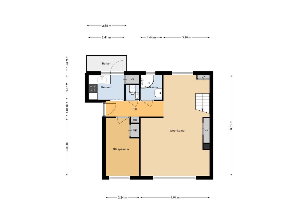 Het balkon aan de dijkzijde is bereikbaar vanuit de keuken.