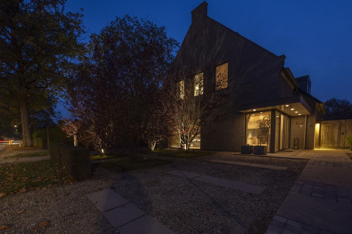 Zowel binnen als buiten is een verfijnd lichtplan toegepast, waardoor de woning ook in de avond een stijlvolle en sfeervolle uitstraling heeft. Middels avondfotografie krijgt u een impressie van dit lichtplan, waarbij zowel de woning als de tuin ’s avonds prachtig tot hun recht komen.