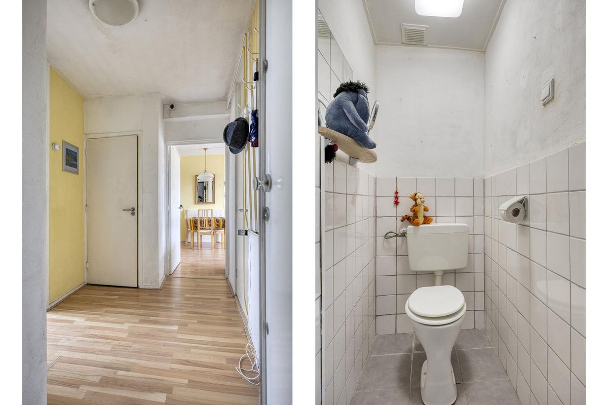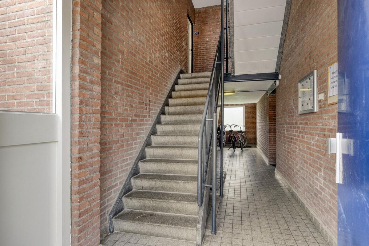 Op de begane grond is de centrale toegang tot het complex, met het bellentableau, brievenbussen en gang naar de kelderboxen. Via de trapopgang is het appartement op de 4e etage bereikbaar.