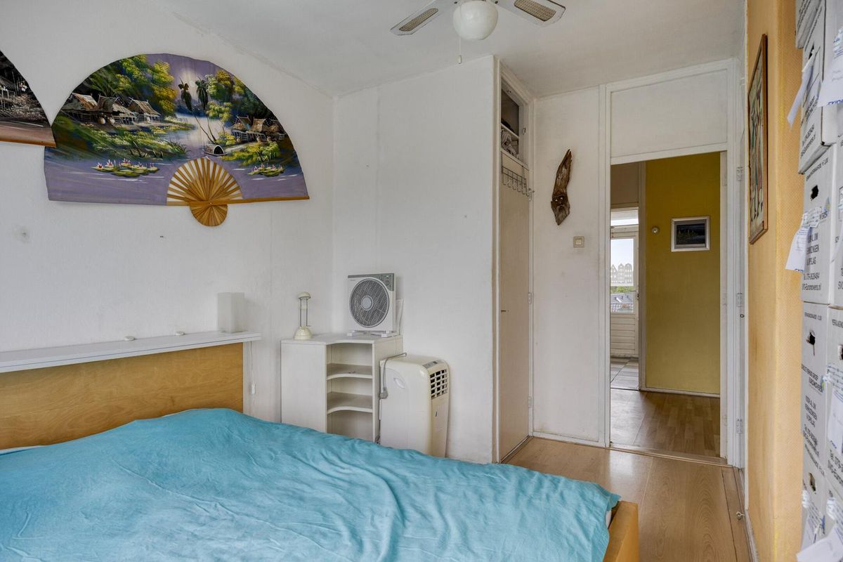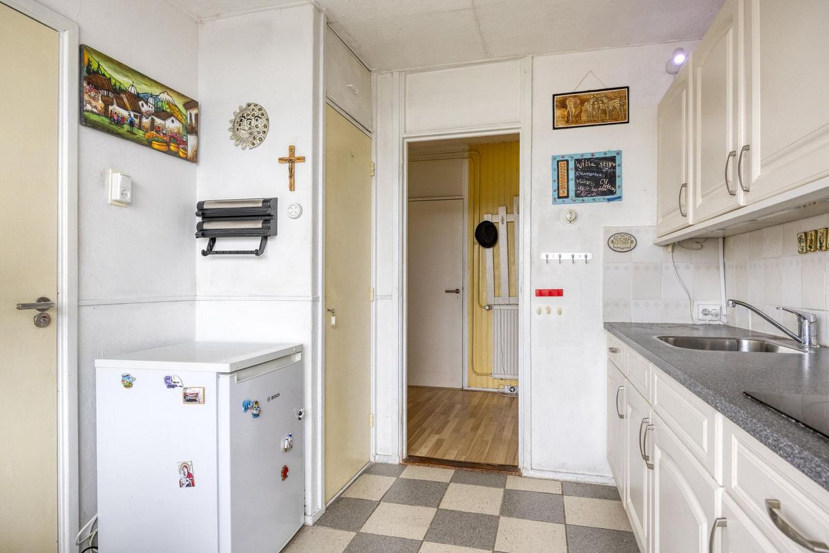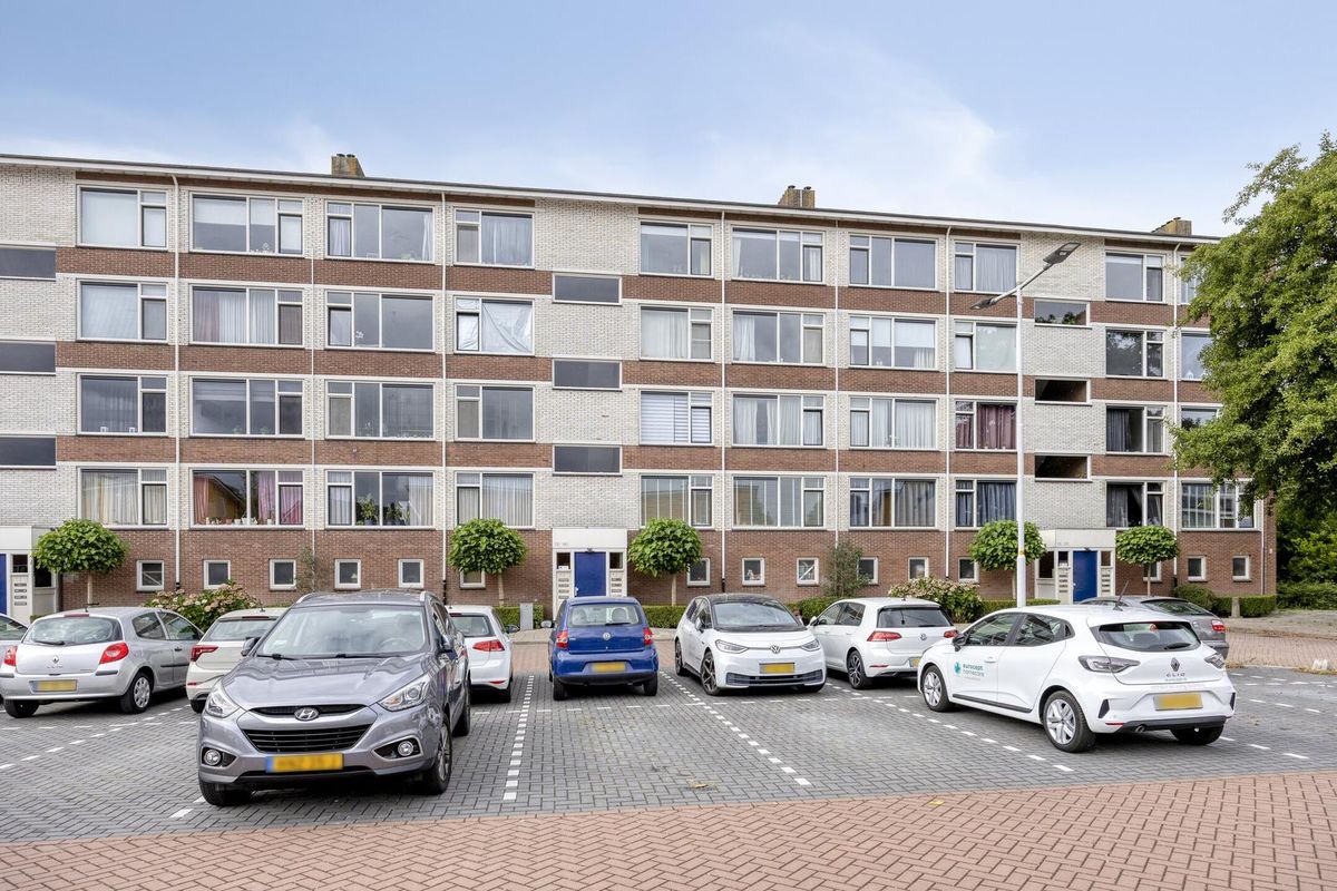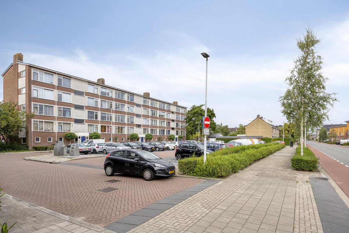 Appartement: Binnenkomst in de hal met inbouwkast, meterkast, toiletruimte en deur naar de lichte woonkamer, die 22m2 groot is. Vanuit de woonkamer is de slaap-/werkkamer aan de achterzijde bereikbaar, met een afmeting van 9m2. Beide kamers zijn afgewerkt met laminaat. Naast de woonkamer ligt de hoofdslaapkamer (10m2) met 2 inbouwkasten. Net als de 2 andere kamers is deze kamer afgewerkt met laminaat en voorzien van kunststof kozijnen. Aan de achterzijde ligt de dichte keuken, met een lichte keukenopstelling (met inductiekookplaat, koelkast en vlakscherm afzuigkap) en deur naar het balkon. Dit balkon ligt op het zonnige zuidwesten en kijkt uit over het nieuwe gedeelte van de wijk, ‘Het Nieuwe Dorp’. In de balkonkast staat de CV-ketel opgesteld (Intergas / bouwjaar 2023 / eigendom). De naastgelegen badkamer heeft een douche en wasmachineaansluiting.