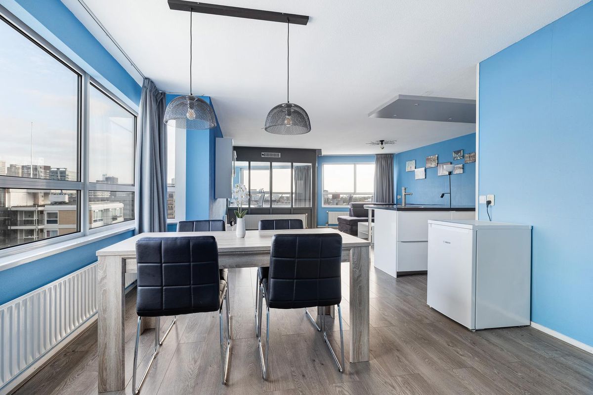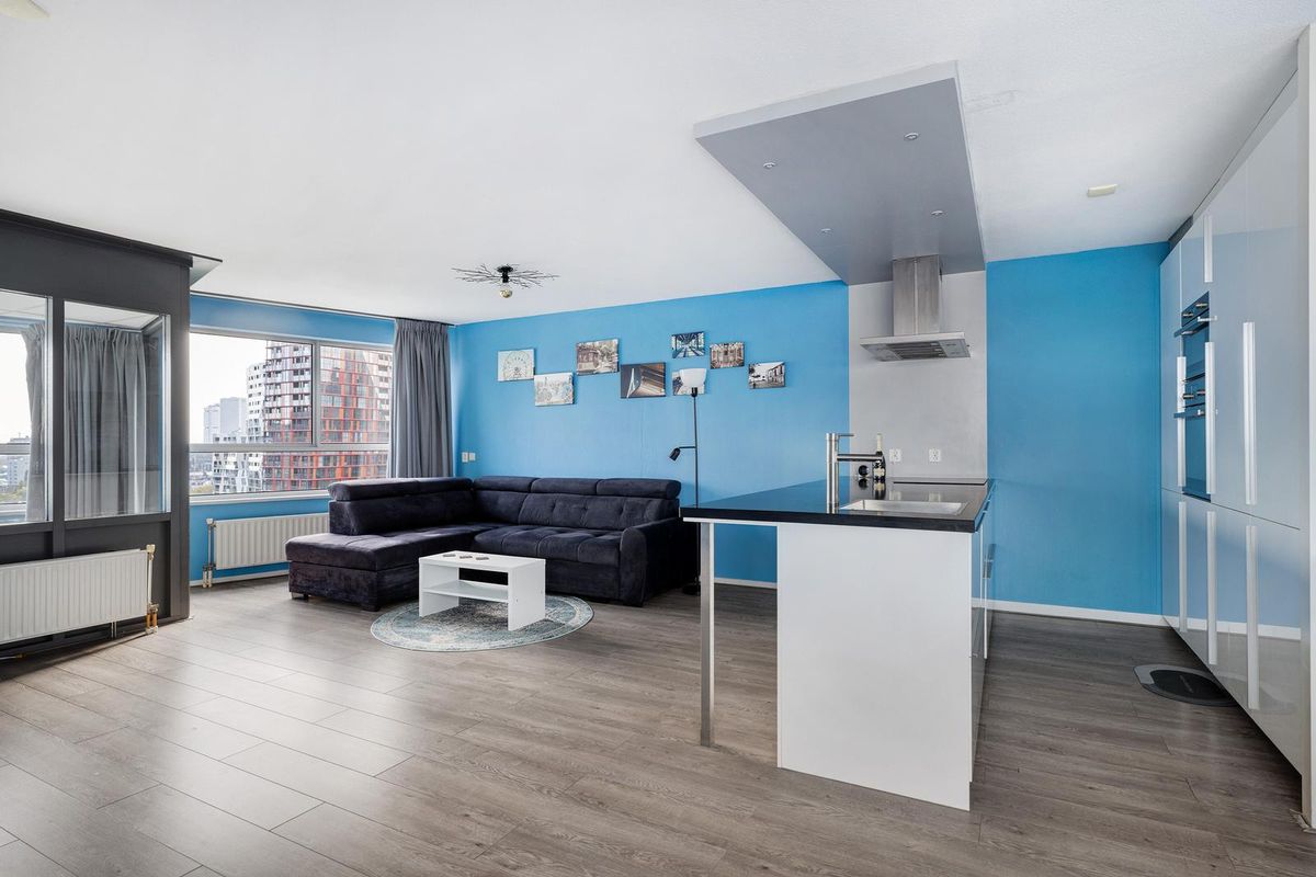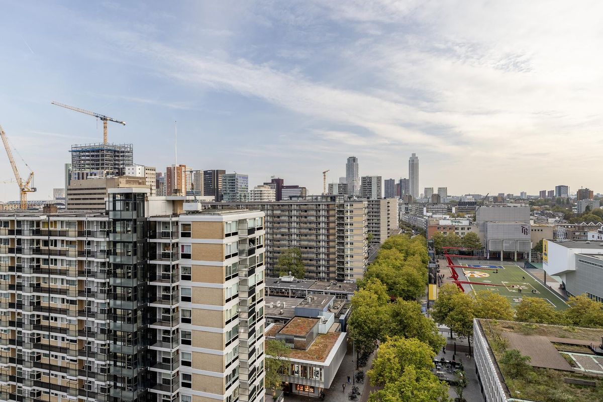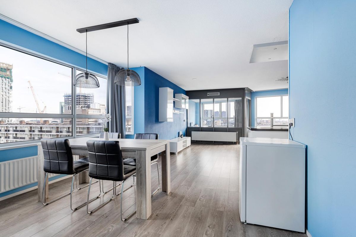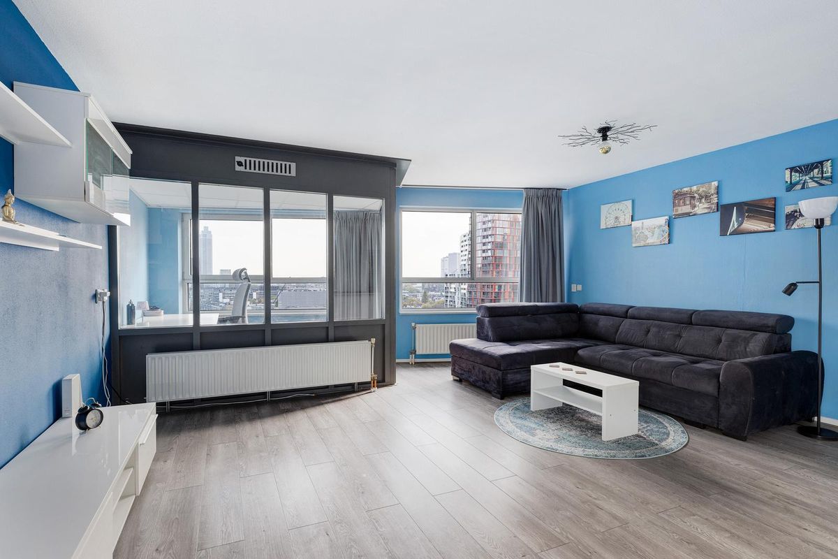 'Living with a view!' Centraal gelegen met een grandioos uitzicht over de skyline van Rotterdam bevindt zich op de 14e verdieping van een keurig onderhouden appartementencomplex dit praktisch ingerichte drie-kamer-appartement. Het complex bevindt zich in het absolute hart van Rotterdam. Via het centrale, gesloten portiek neem je de lift naar de 14e verdieping en bereik je het appartement. De woning is praktisch ingedeeld met een centrale entree/hal van waaruit alle ruimten te bereiken zijn. Binnengekomen in de living valt direct op hoeveel licht er binnenkomt door de grote raampartijen. Als vanzelf loop je verder en kijk je door de ramen in verschillende richtingen naar buiten. Wat een fantastisch uitzicht heb je vanaf deze verdieping op de skyline van Rotterdam. Je voelt je direct thuis.