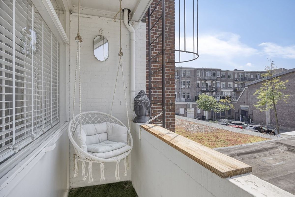 Aan de achterzijde vindt u een balkon op het Zuidwesten, waar u kunt genieten van de middag- en avondzon. Dit is een waardevolle plek om even te ontsnappen aan de stadse drukte, of het nu gaat om een kop koffie in de ochtend of een glas wijn aan het einde van de dag.