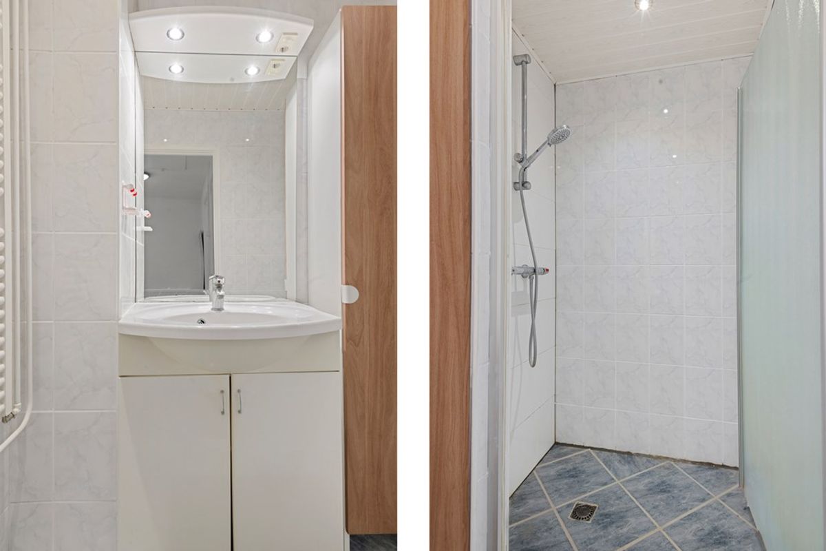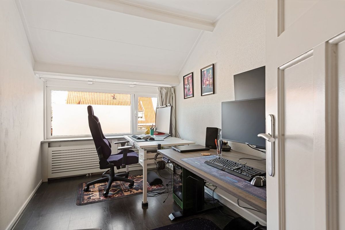 boven de uitbouw. Aan de voorzijde bevinden zich twee slaapkamers. De volledig betegelde badkamer is uitgerust met een wastafelmeubel, design-radiator en een inloopdouche.