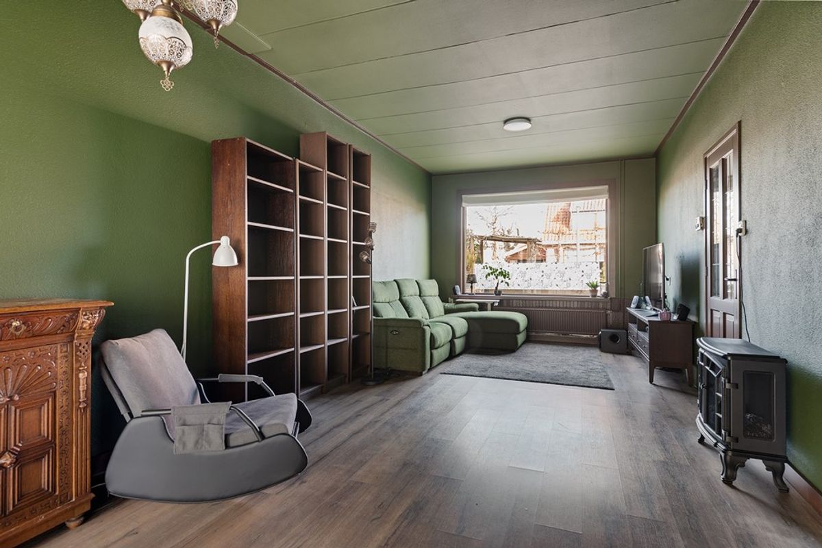 Via de voortuin bereik je de entree van de woning. In de hal bevinden zich de meterkast en de trap naar de eerste verdieping. Dankzij de raampartij aan de voorzijde en de brede schuifpui aan de achterzijde heeft de woonkamer een fijne, natuurlijke lichtinval. Daarnaast zijn er twee handige inbouwkasten die zorgen voor extra bergruimte. Aangrenzend aan de woonkamer bevinden zich, via een tussendeur, het toilet en de keuken in de uitbouw. De moderne en hoekkeuken is voorzien van diverse inbouwapparatuur o.a. een koelkast, inductie kookplaat met afzuigkap en een vaatwasser. Zowel via de keuken als de woonkamer is er toegang tot de achtertuin.