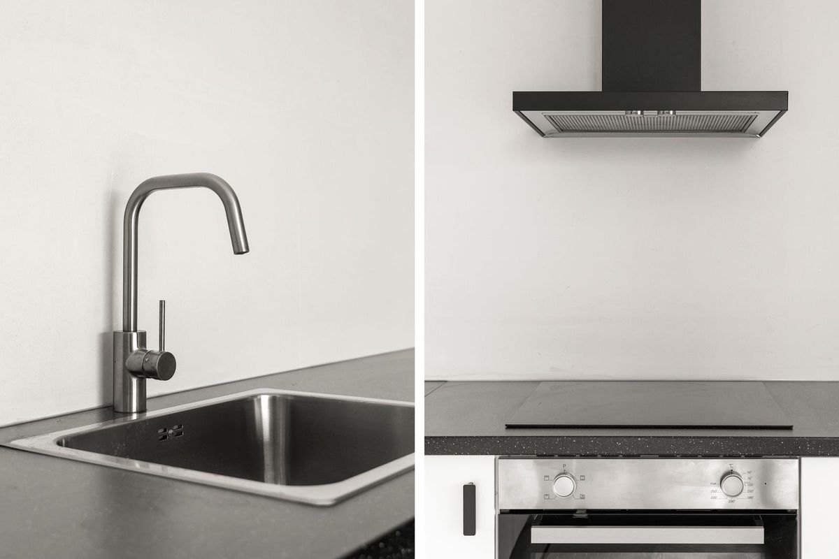 De moderne keuken uit 2024 is een ware eyecatcher en voorzien van alle gemakken zoals een inductiekookplaat, afzuigschouw, vaatwasser, koelkast, vriezer en een oven. Alles is gloednieuw en nog niet eerder gebruikt.