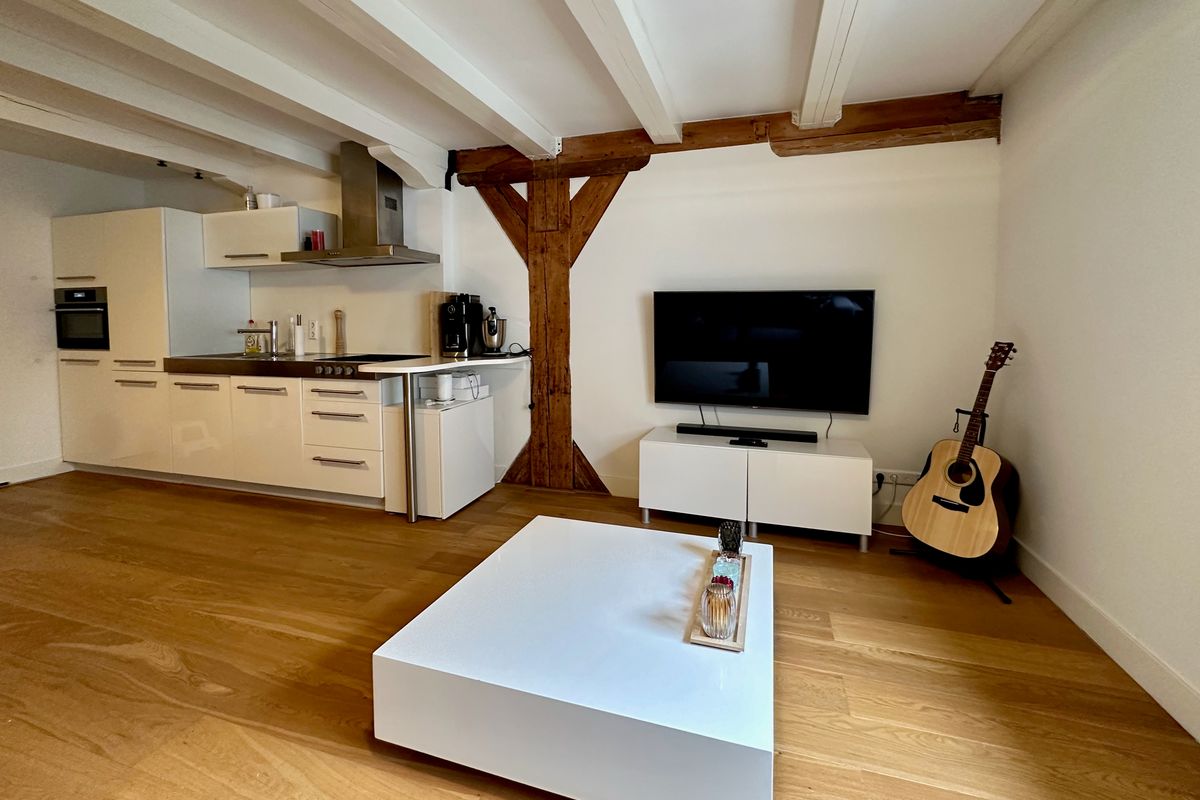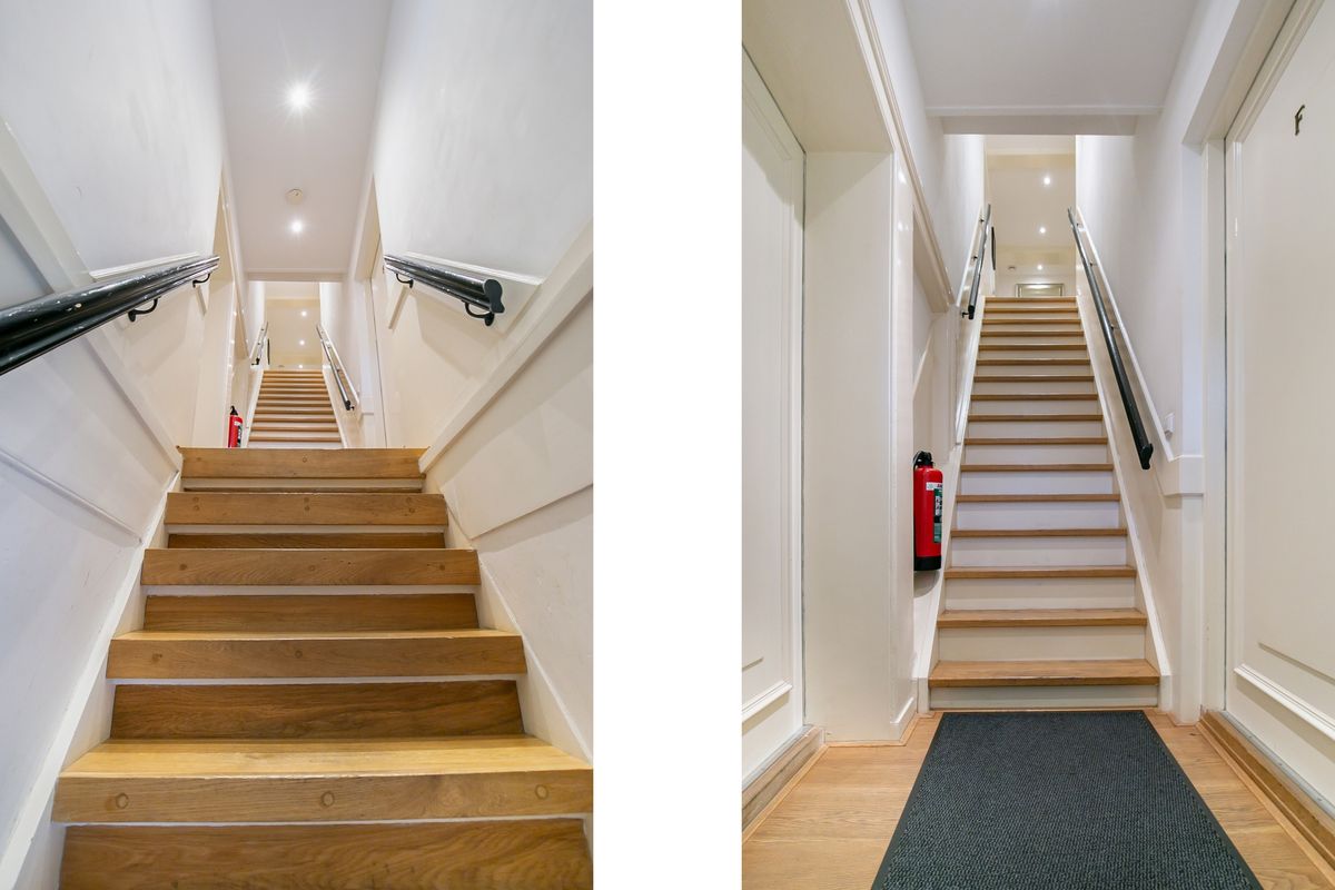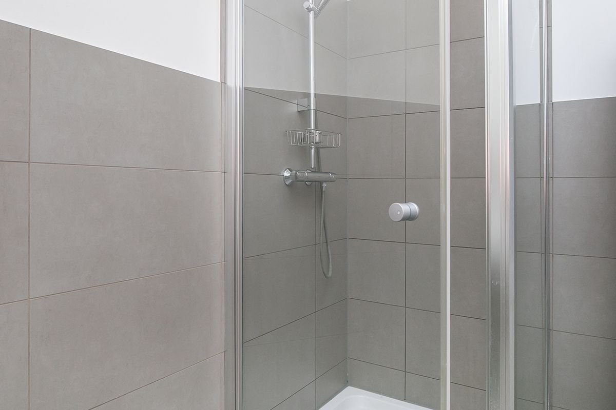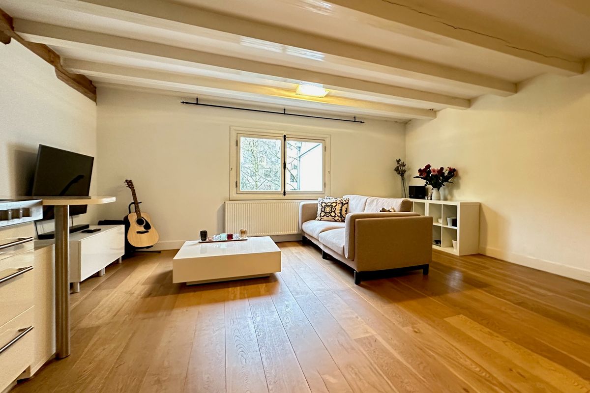 Third floor: Very spacious bedroom (30m²) which offers many possibilities for e.g. creating a study space, adjacent to the bathroom with walk-in shower, sink and toilet. This bedroom also gives a beautiful view over the backyards.