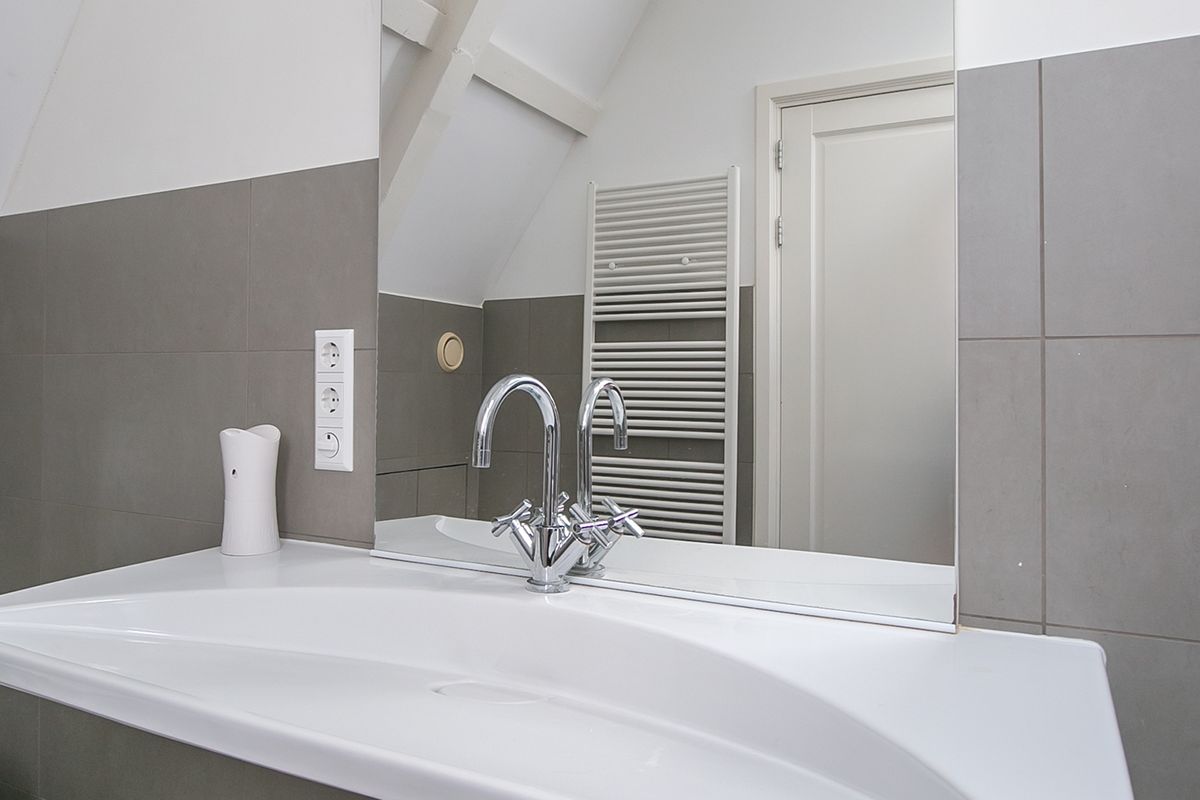 Derde verdieping: Zeer ruime slaapkamer (30 m²) deze ruimte biedt veel mogelijkheden voor het creëren van b.v. een study/ werkruimte met aangrenzend de badkamer voorzien van inloopdouche, wastafel en toilet. Deze slaapkamer geeft tevens ook een mooi uitzicht over de achtertuinen.