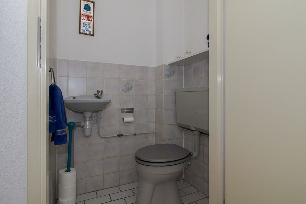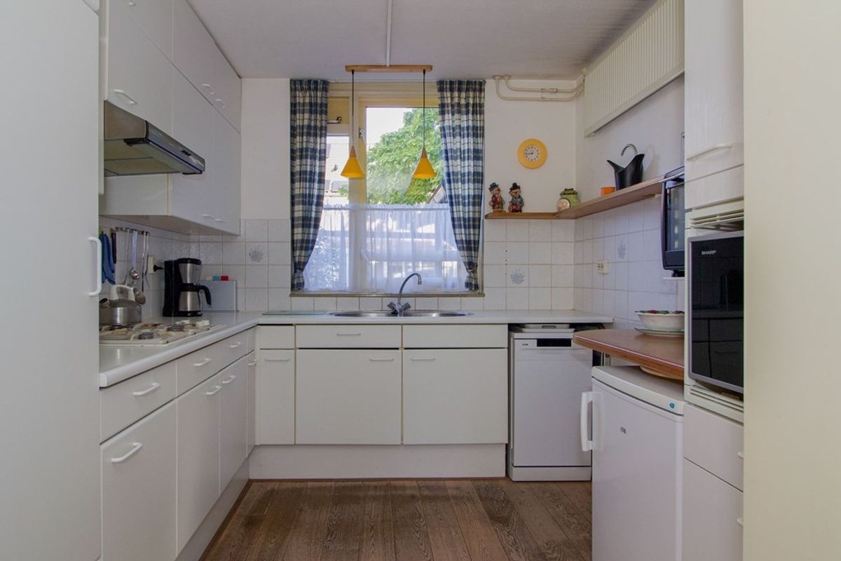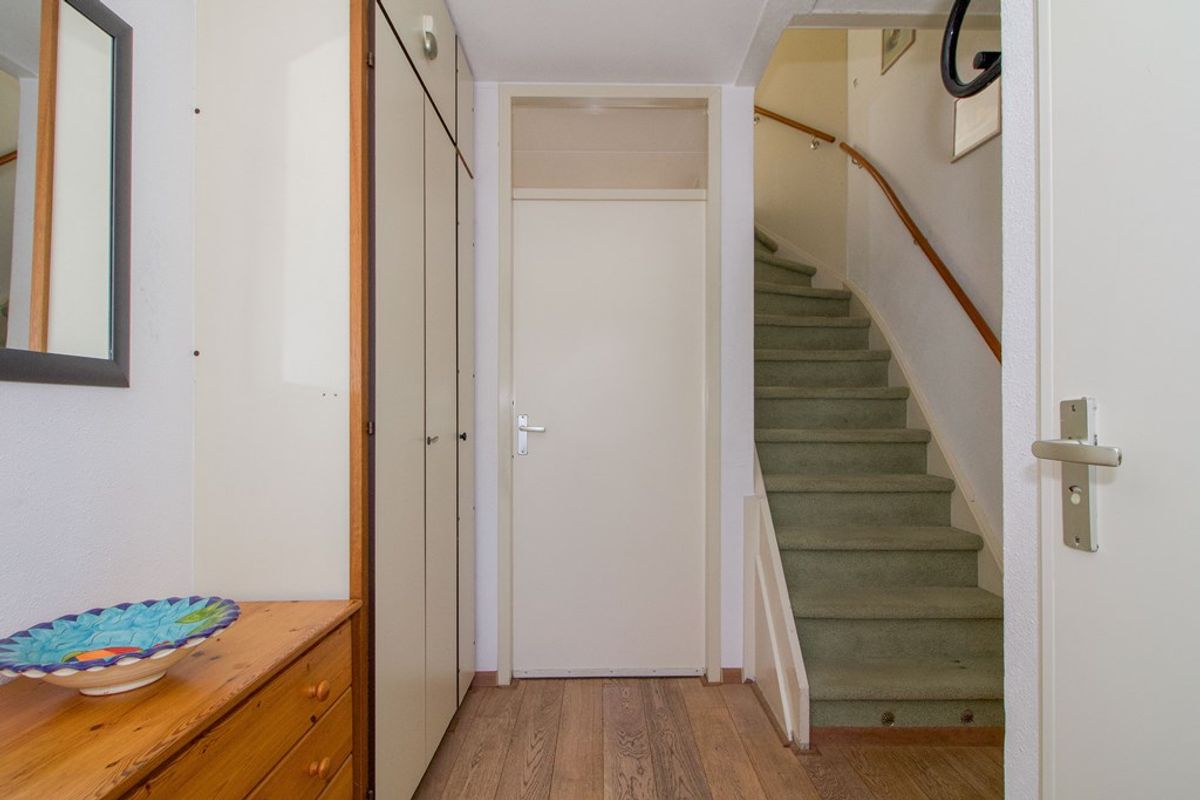 Entree met hal, toilet en trapopgang. Aan de voorzijde een keuken in open verbinding met de ruime, lichte woonkamer met toegang tot de tuin. Verder is er een praktische trapkast aanwezig.