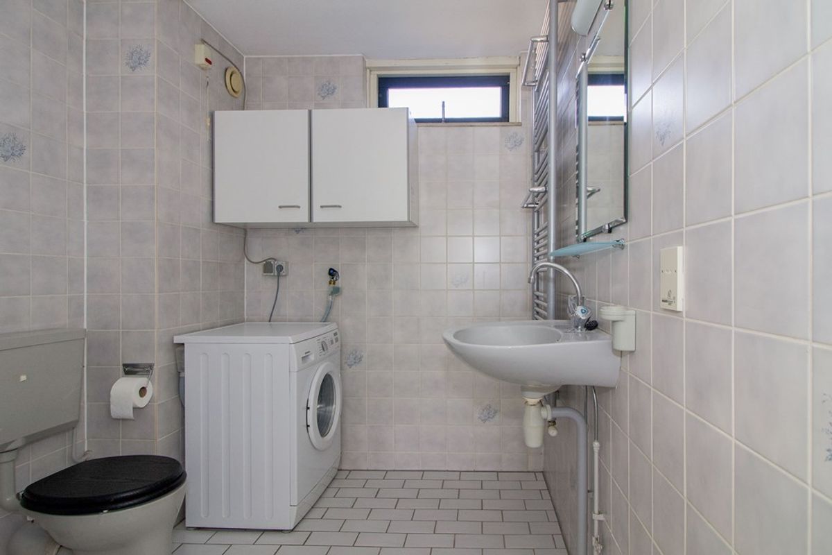 Overloop met toegang tot drie slaapkamers en de badkamer. De badkamer is voorzien van douche, wastafel, toilet en een aansluiting voor de wasmachine.