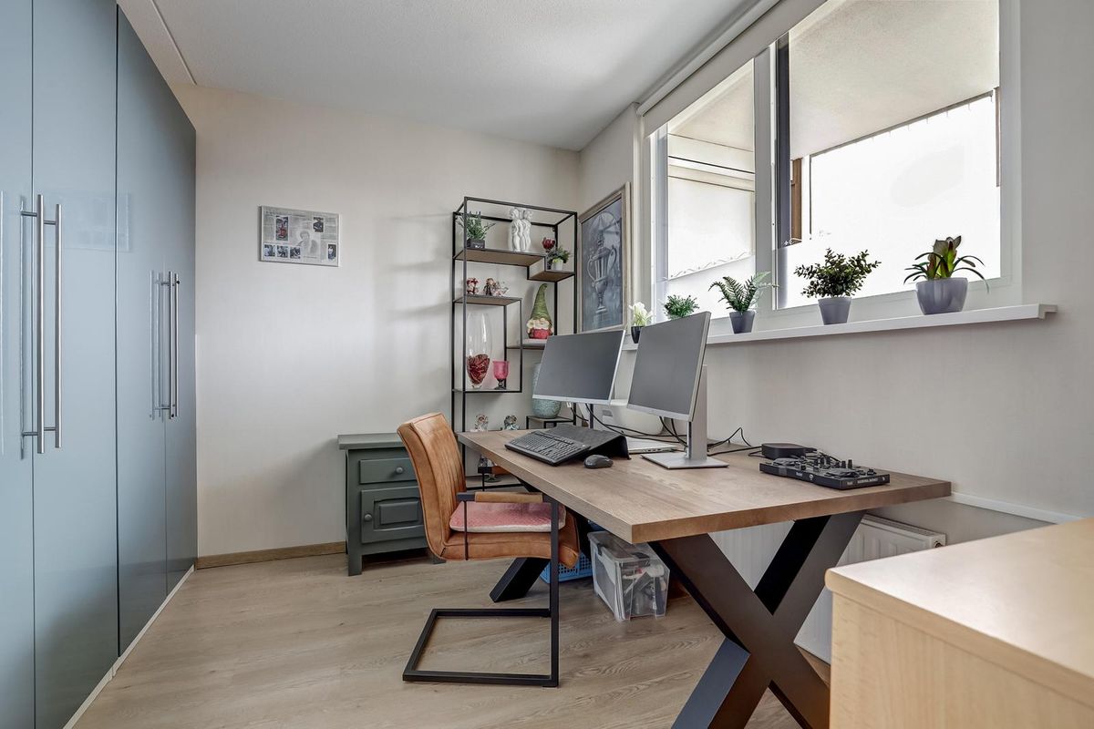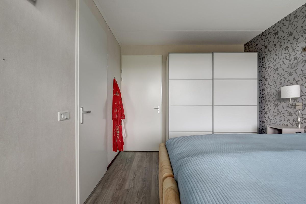 Het appartement beschikt over twee slaapkamers. De grootste slaapkamer ligt aan de balkonzijde en is ruim genoeg voor een tweepersoonsbed en een grote kledingkast. De tweede slaapkamer is ideaal als logeerkamer, kantoor of hobbyruimte en heeft eveneens veel lichtinval.
