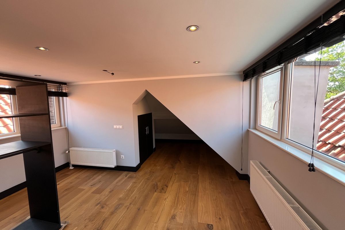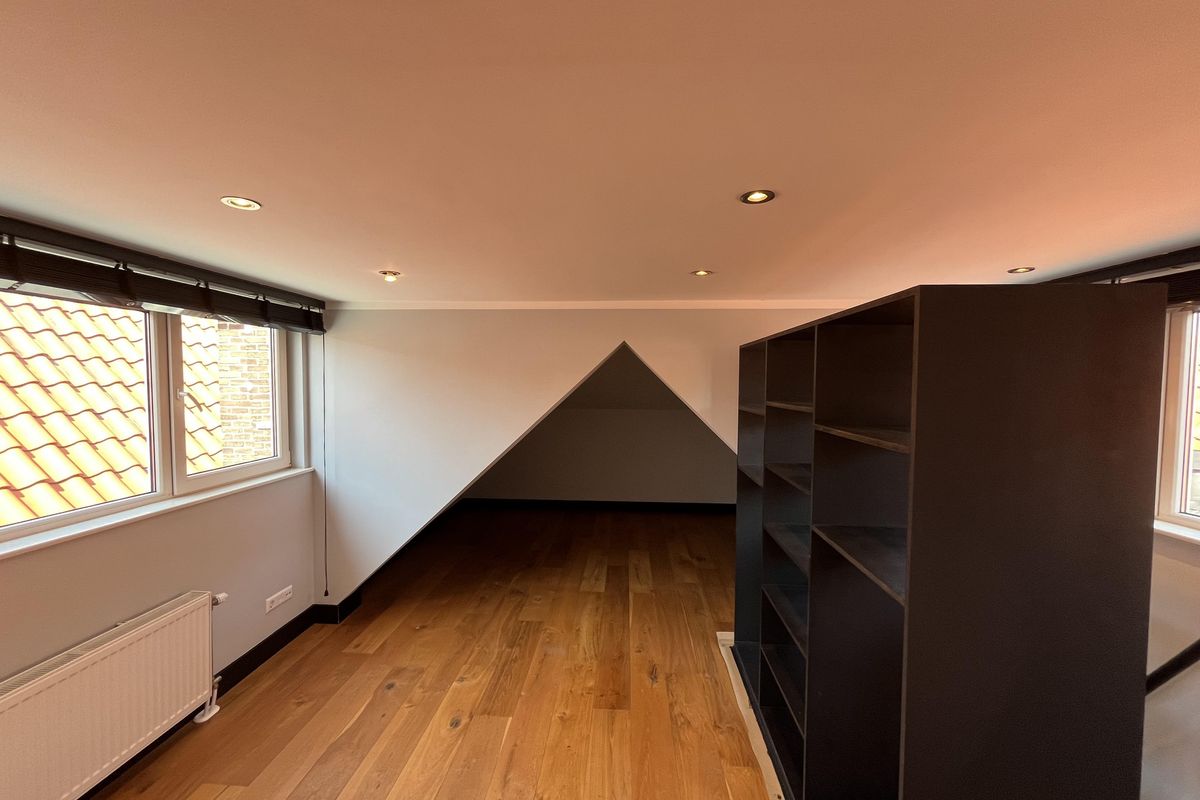 3e verdieping : open ruimte met een grote dakkapel waardoor het heerlijk licht is en aan beiden kanten een schuine zijde waar je een slaapplek (2) kan creëren en veel opbergruimte hebt, kast met opstelplaats van de cv ketel.