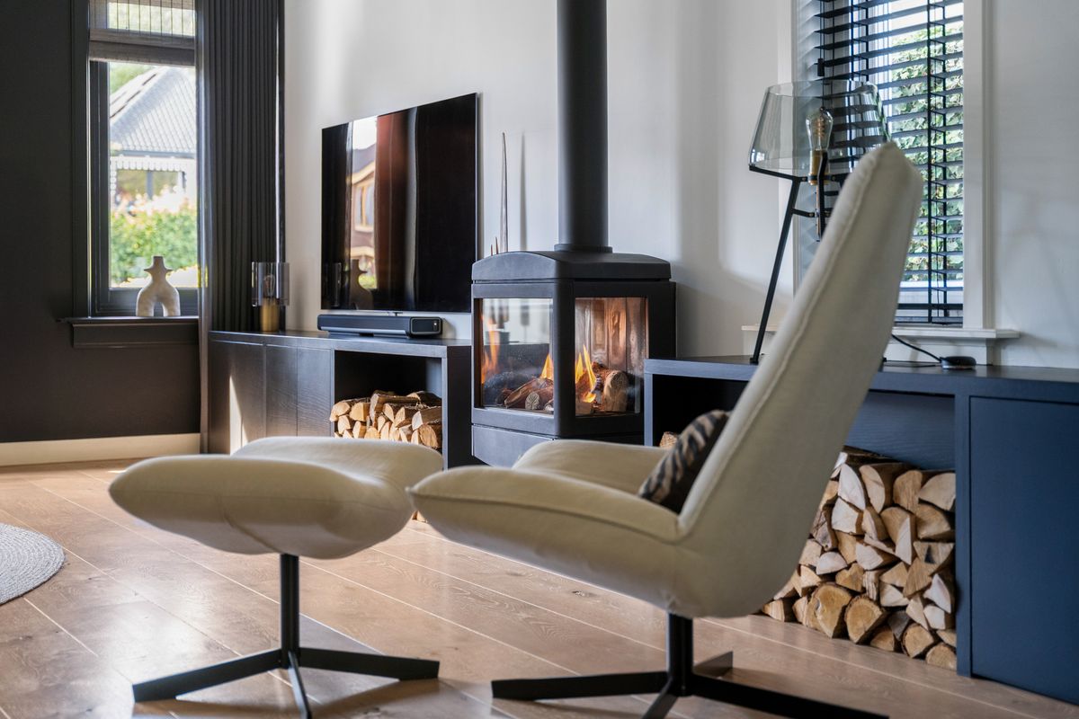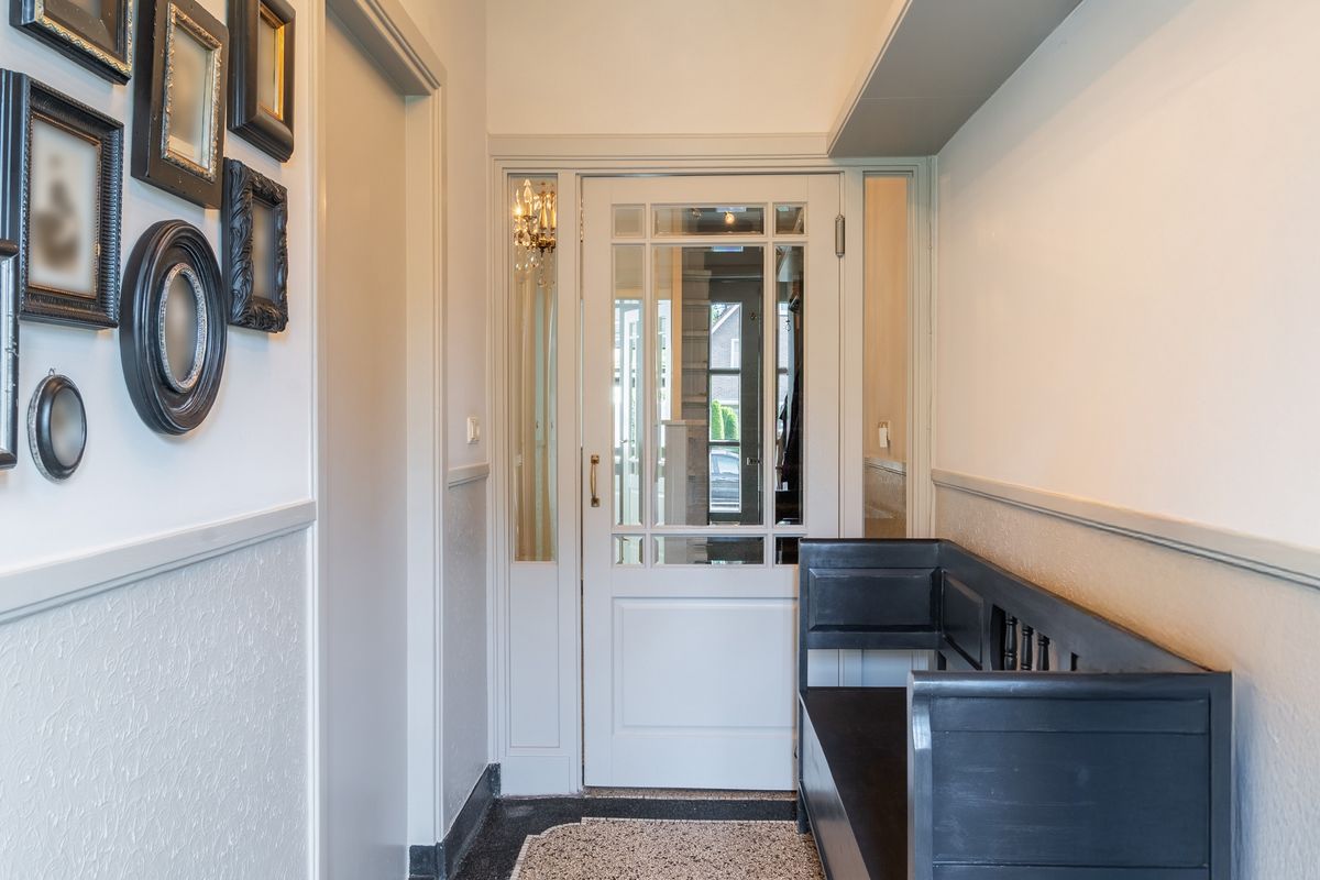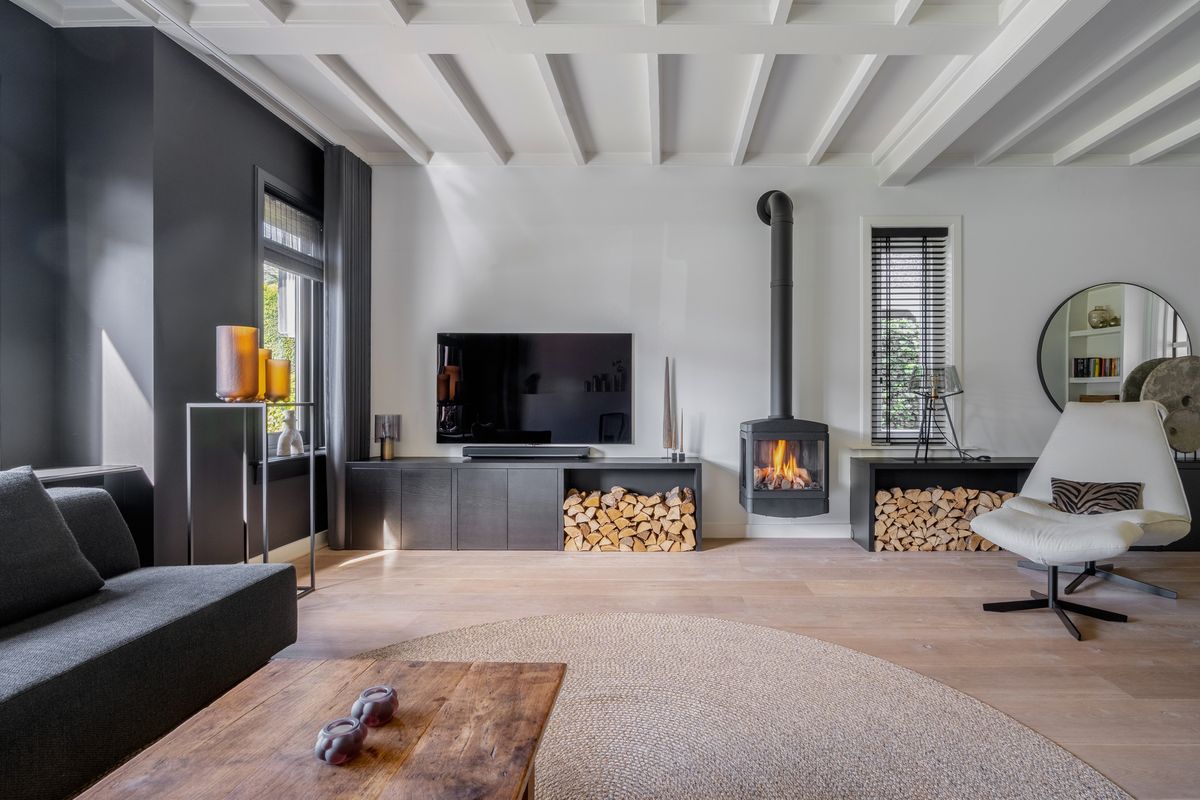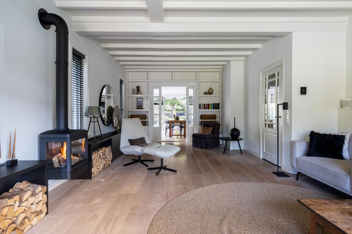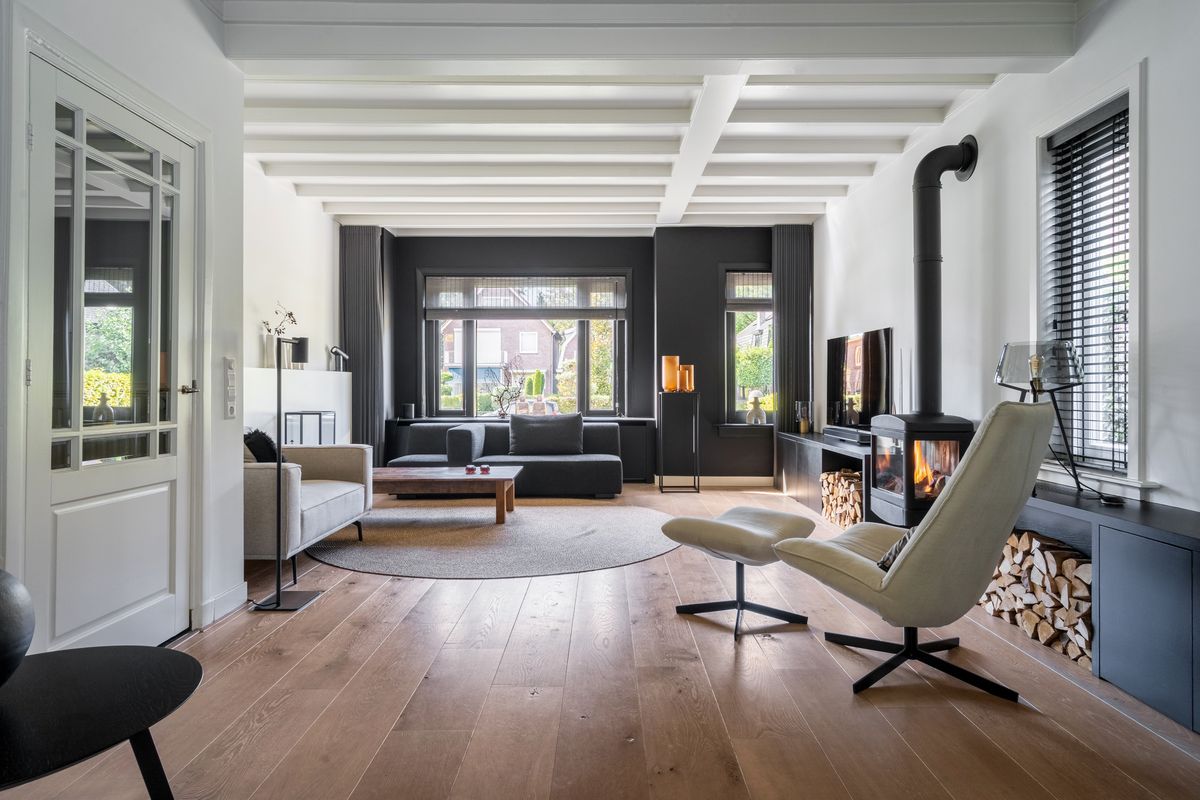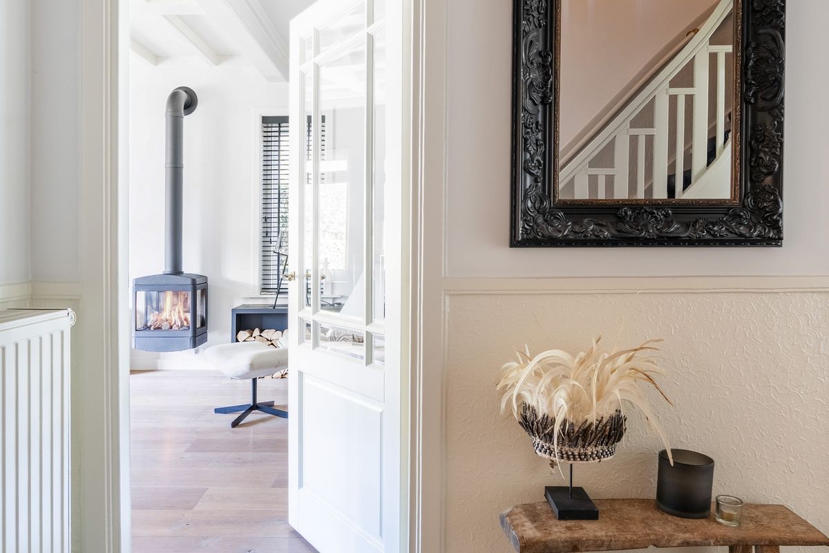U komt binnen in de entree en hal, welke beiden voorzien zijn van een authentieke granito vloer. Via de entree en hal, toilet en trapopgang betreedt u de ruime woonkamer. De grote raampartijen zorgen voor veel lichtinval. De stijlvolle gashaard vormt een echte eyecatcher en creëert een luxe, behaaglijke sfeer.