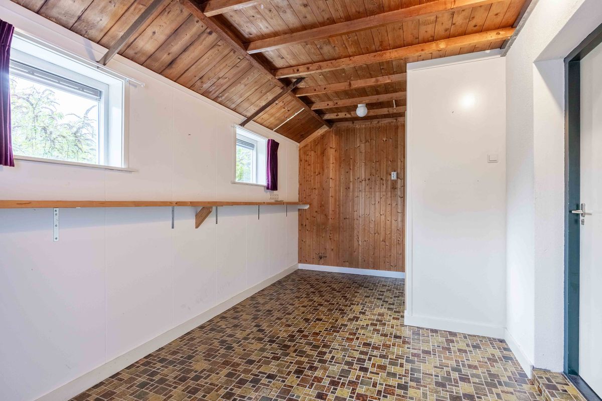 Aansluitend op de keuken vind je de praktische bijkeuken, waar je niet alleen plek hebt voor de wasmachine en droger (witgoed), maar ook de CV-opstelling (Nefit, 2015, eigendom) zich bevindt. De deur naar de achtertuin vind je ook hier.