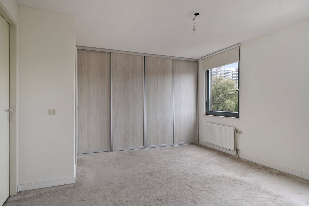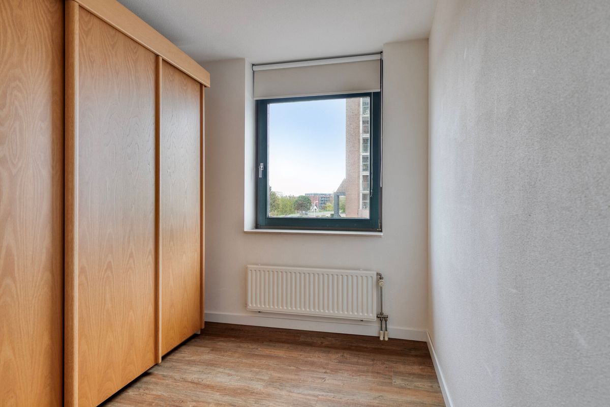 Slaapkamer 2, gelegen aan de zijgevel. Voorzien van een grote kast met schuifdeuren.