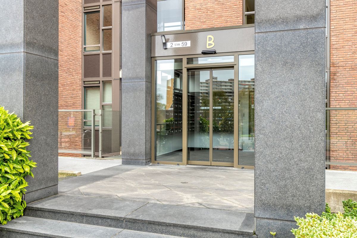 Afgesloten entree met bellentableau/intercom en brievenbussen, toegang tot de dubbele liftinstallatie.
